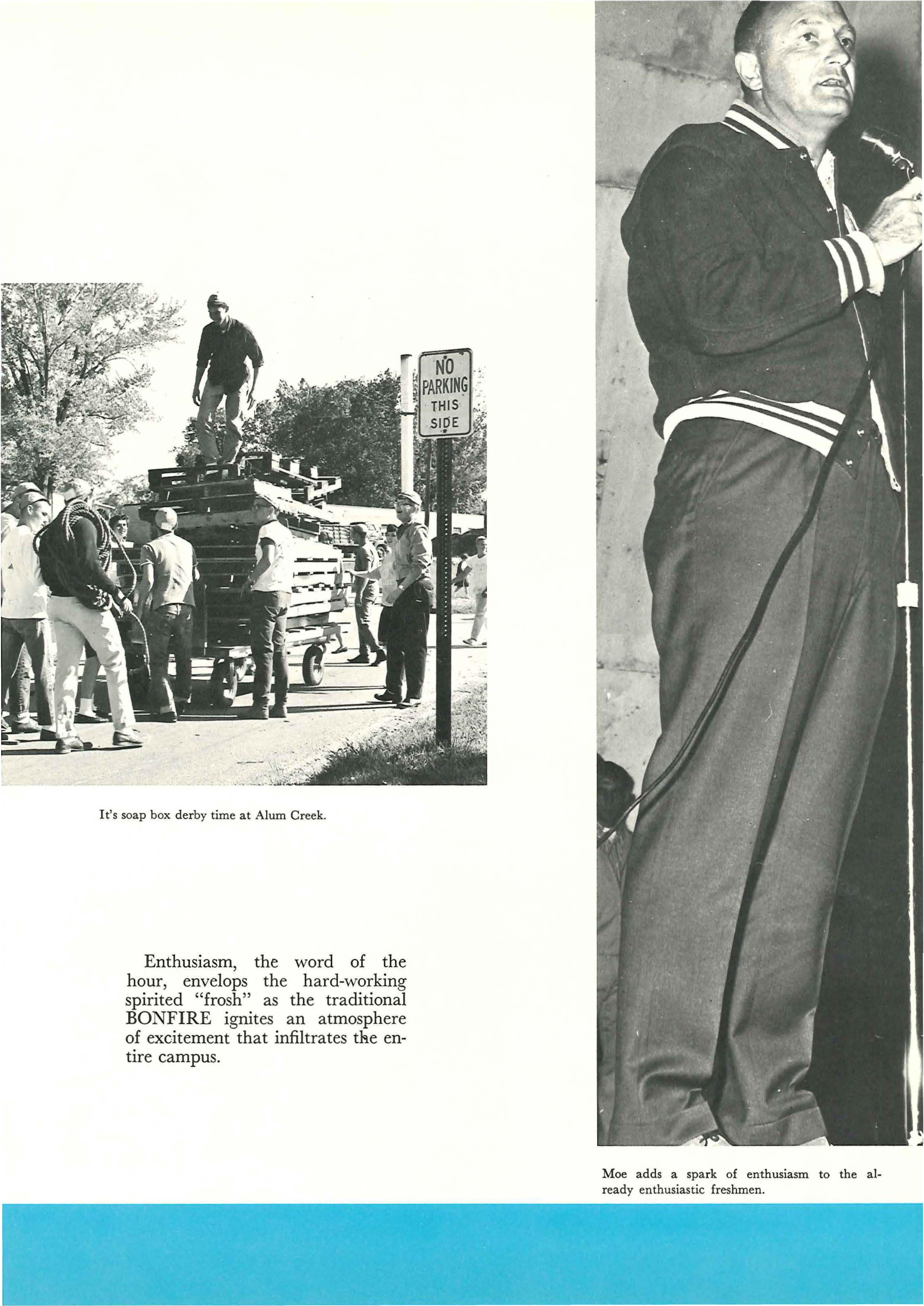 ... Football practice ... freshman bonfire ... a home football game ... a mighty cheer ... all outlets testing the strength, agility, and tenacity of young college blood