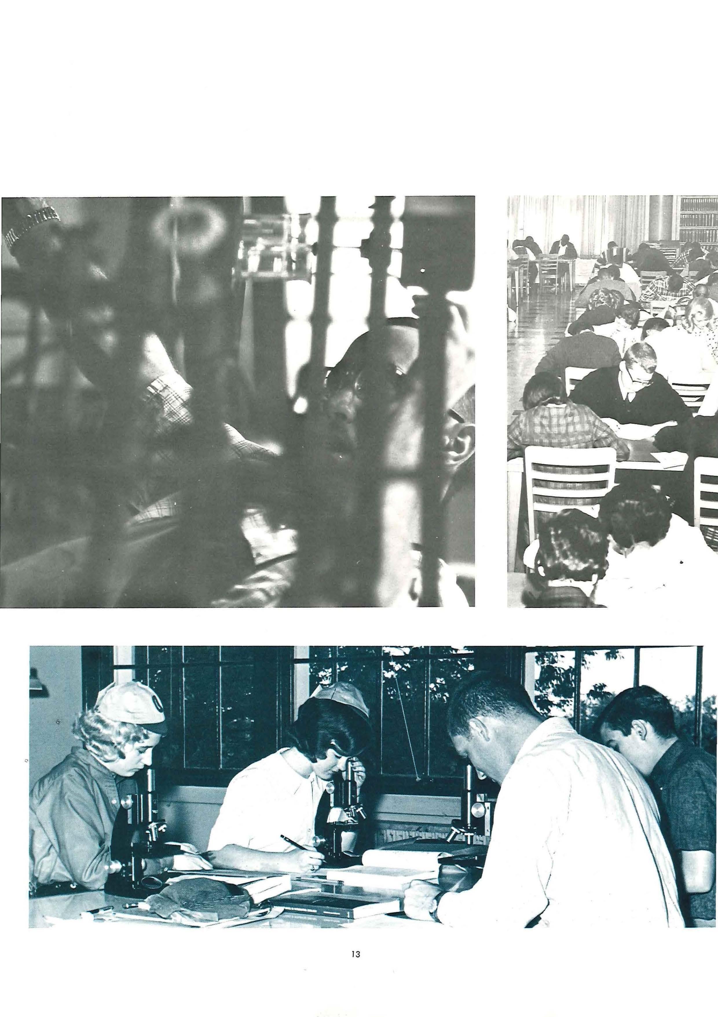 While students talked, studied, and slept, their needs were forecasted and fulfilled. FOOD SERVICE relentlessly prepared over 1,300 meals a day for dining hall consumption. The HEALTH SERVICE was constantly available for student ailments. SECURITY POLICE kept up a constant surveillance during the quiet hours. Finally, AUDIO-VISU AL silently provided those film supplements professors used. These were the people who worked behind the scenes to do the services we took for granted.