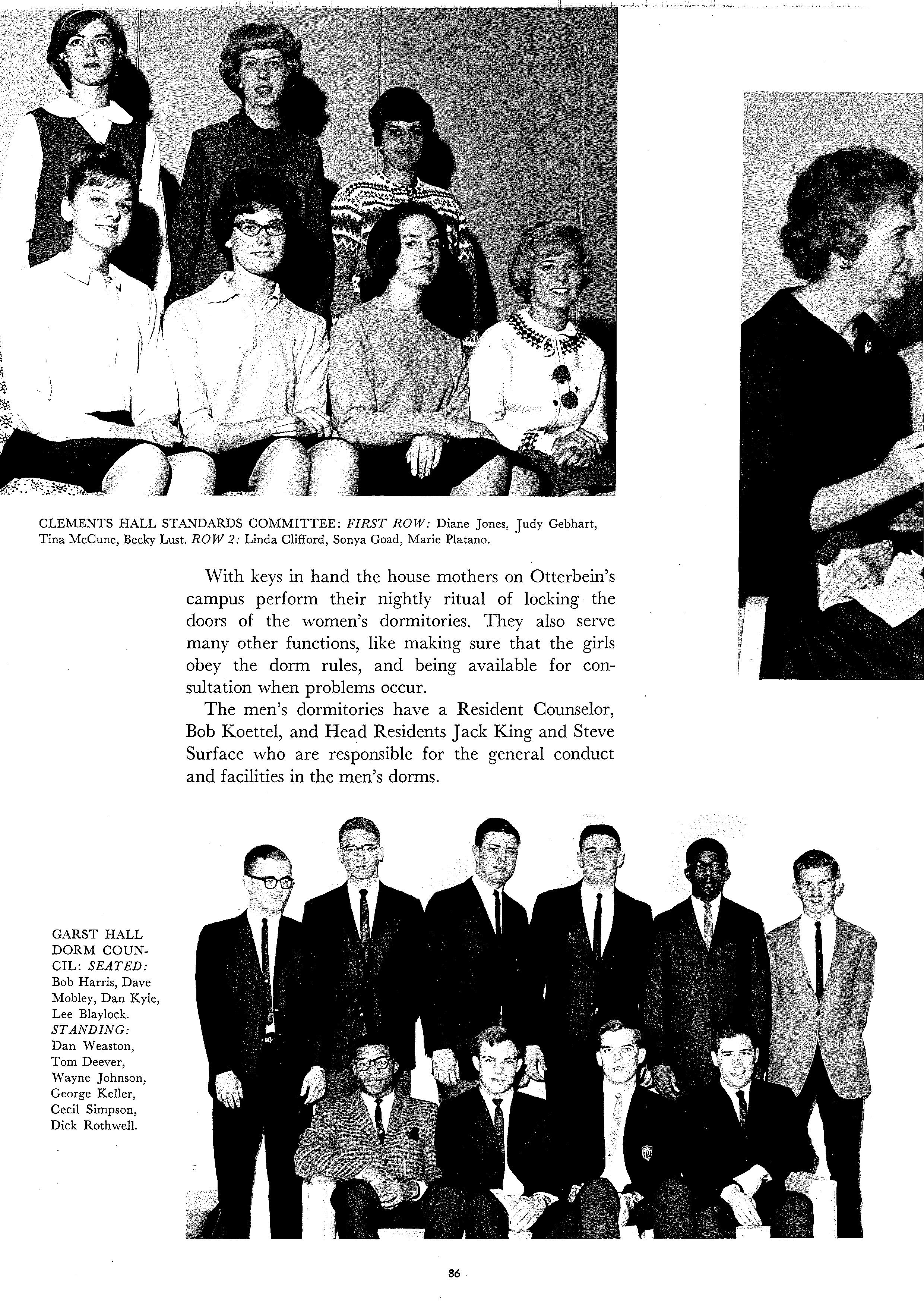 Annually, the BOARD OF TRUSTEES meet to discuss issues and to act upon reports and recommendations. This year the board chaired by Dr. Harold Boda came on campus November 6 and 7. The Otterbein College Trustees saw Otterbein's needs and foresaw her problems, and acted accordingly, to promote her well-planned growth.