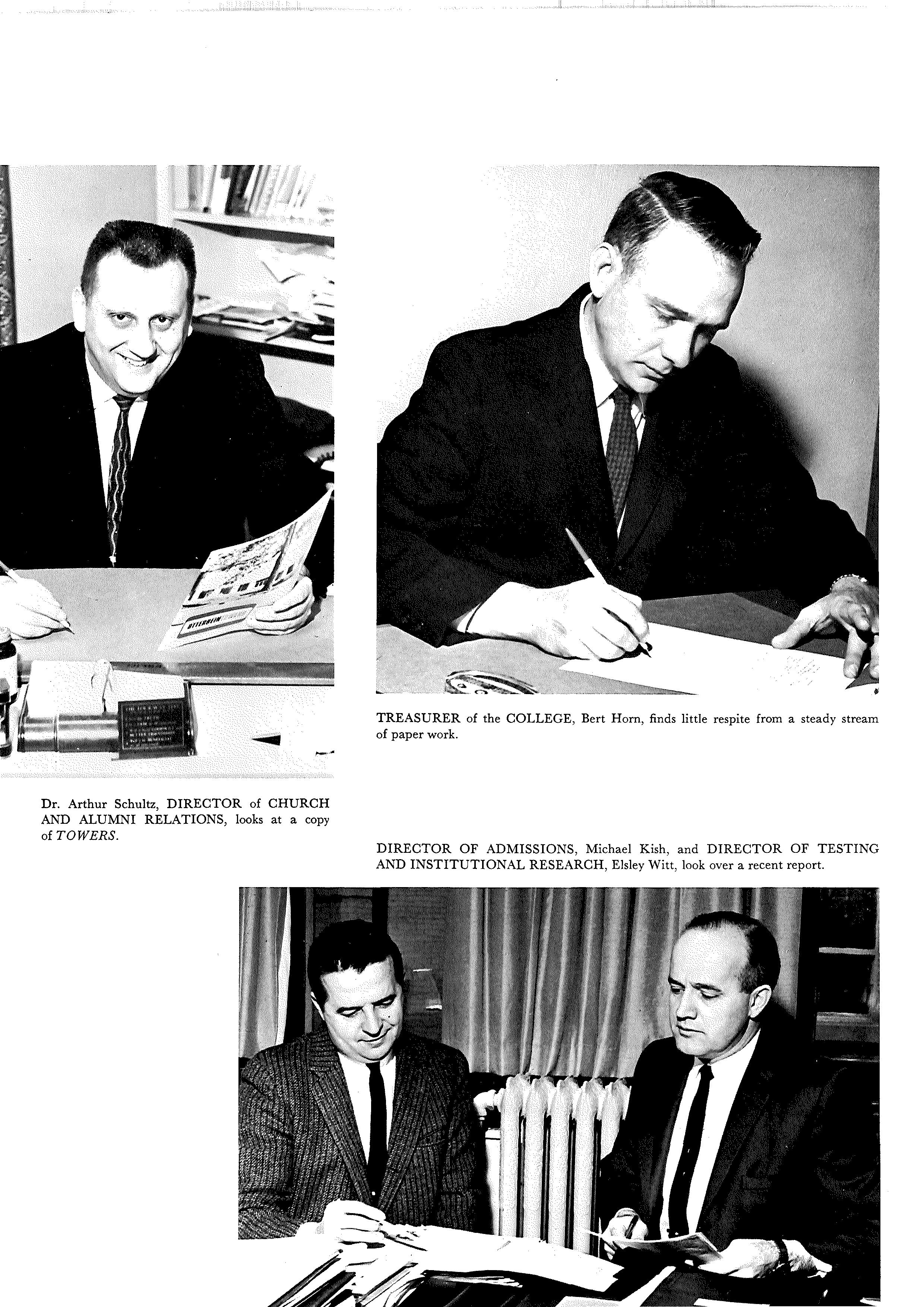 Dr. Arthur Schultz, DIRECTOR of CHURCH AND ALUMNI RELATIONS, looks at a copy of TOWERS.