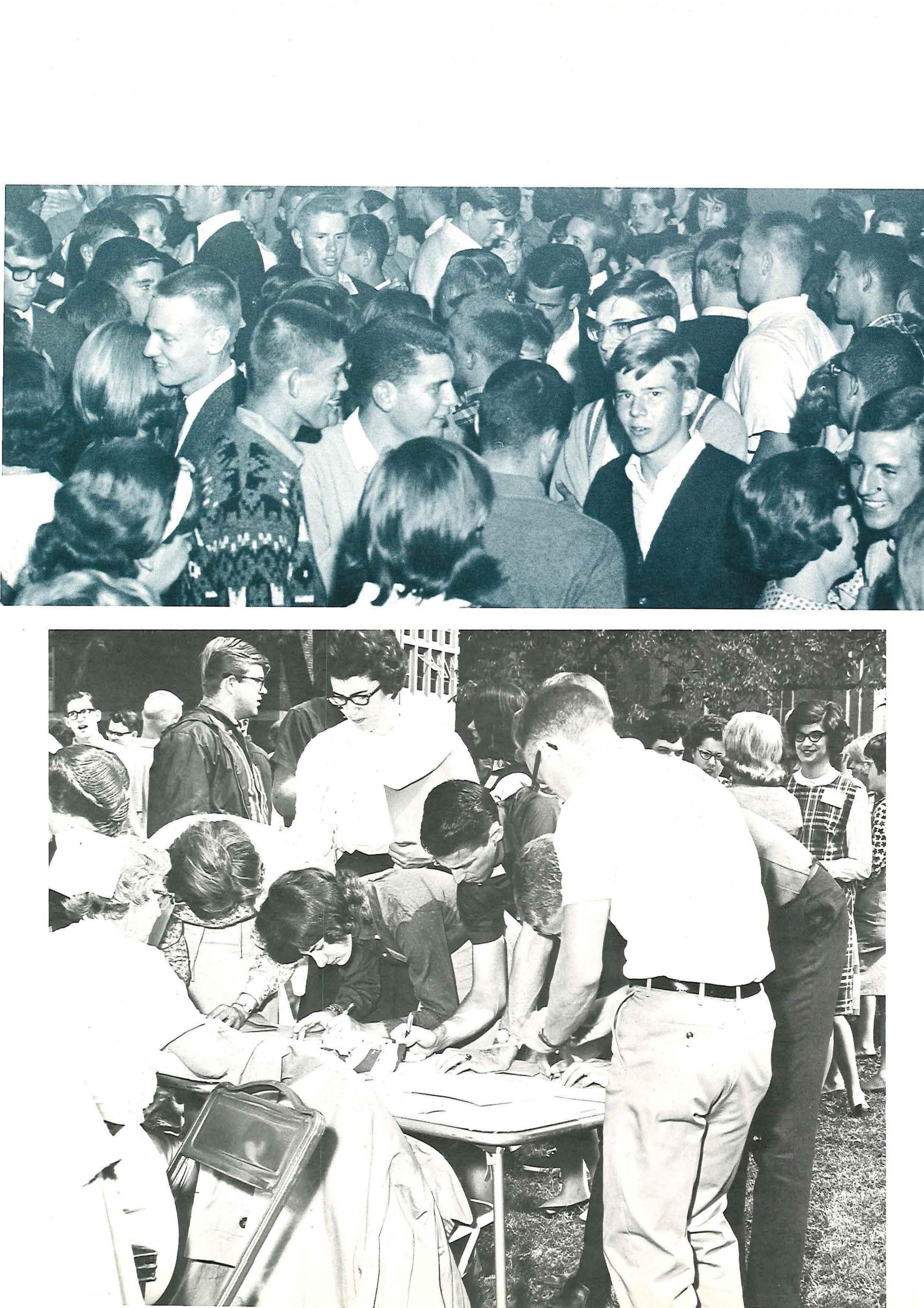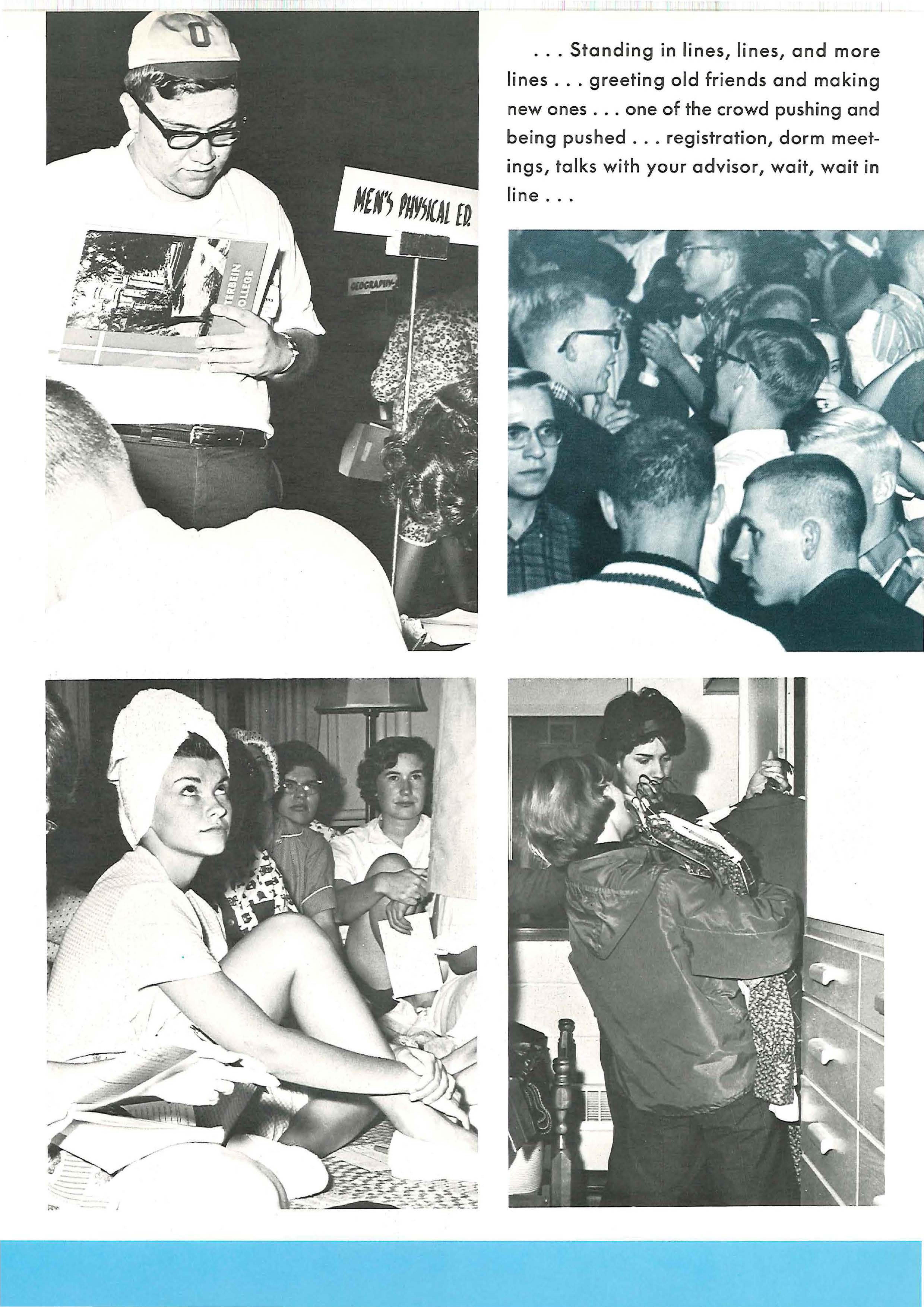 ... Standing in lines, lines, and more lines greeting o ld friends and making new ones ... one of the crowd pushing and being pushed ... registration, dorm meetings, talks with your advisor, wait, wait in line ...