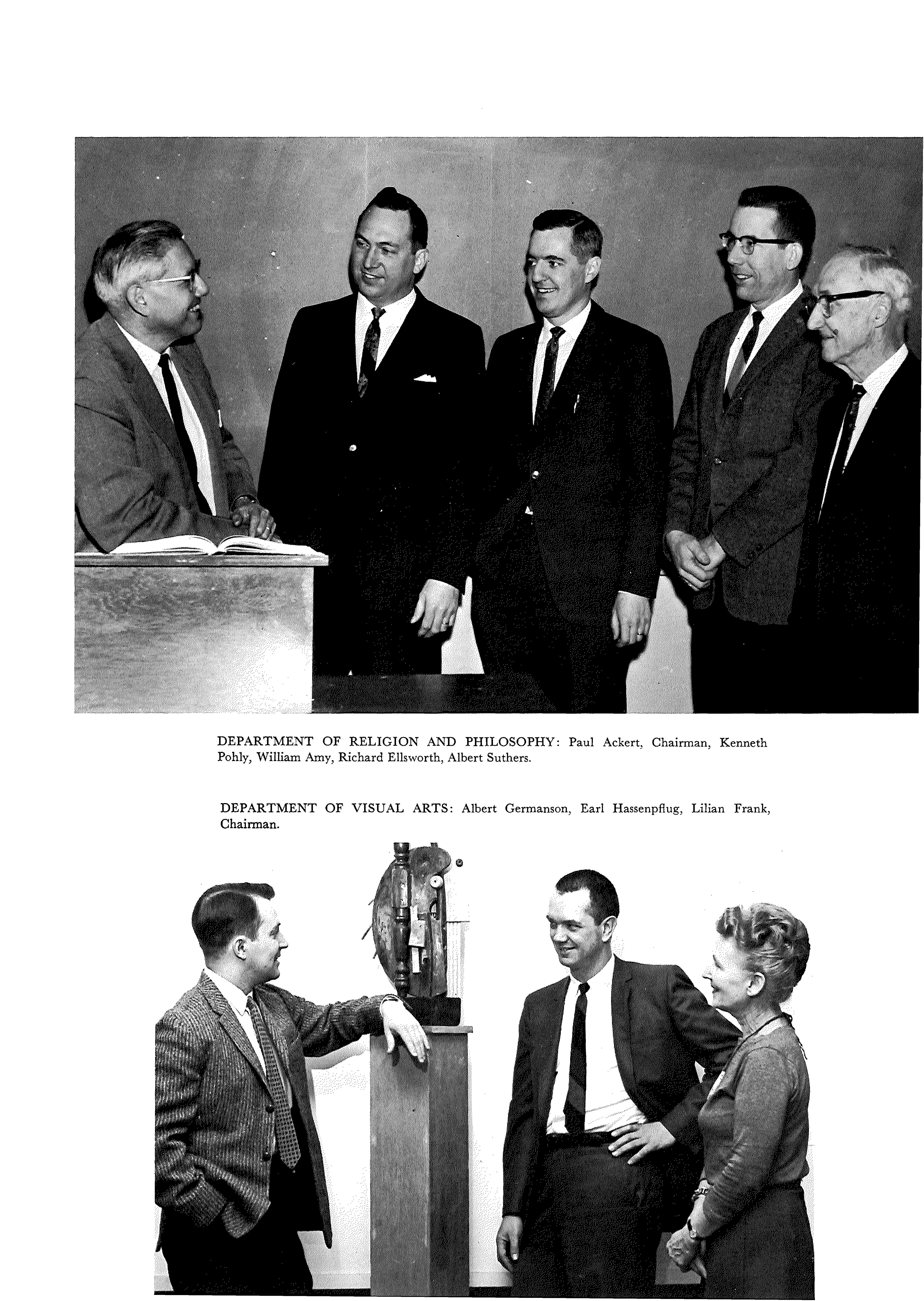 DEPARTMENT OF RELIGION AND PHILOSOPHY: Paul Ackert, Chairman, Kenneth Pohly, William Amy, Richard Ellsworth, Albert Suthers.