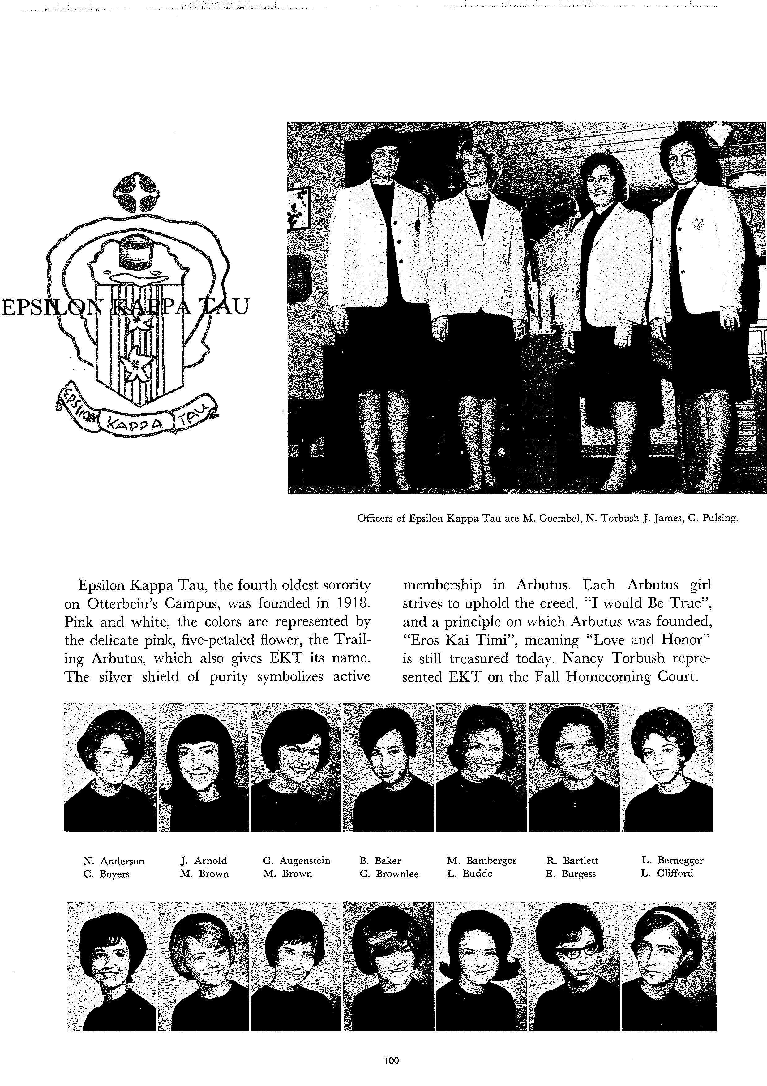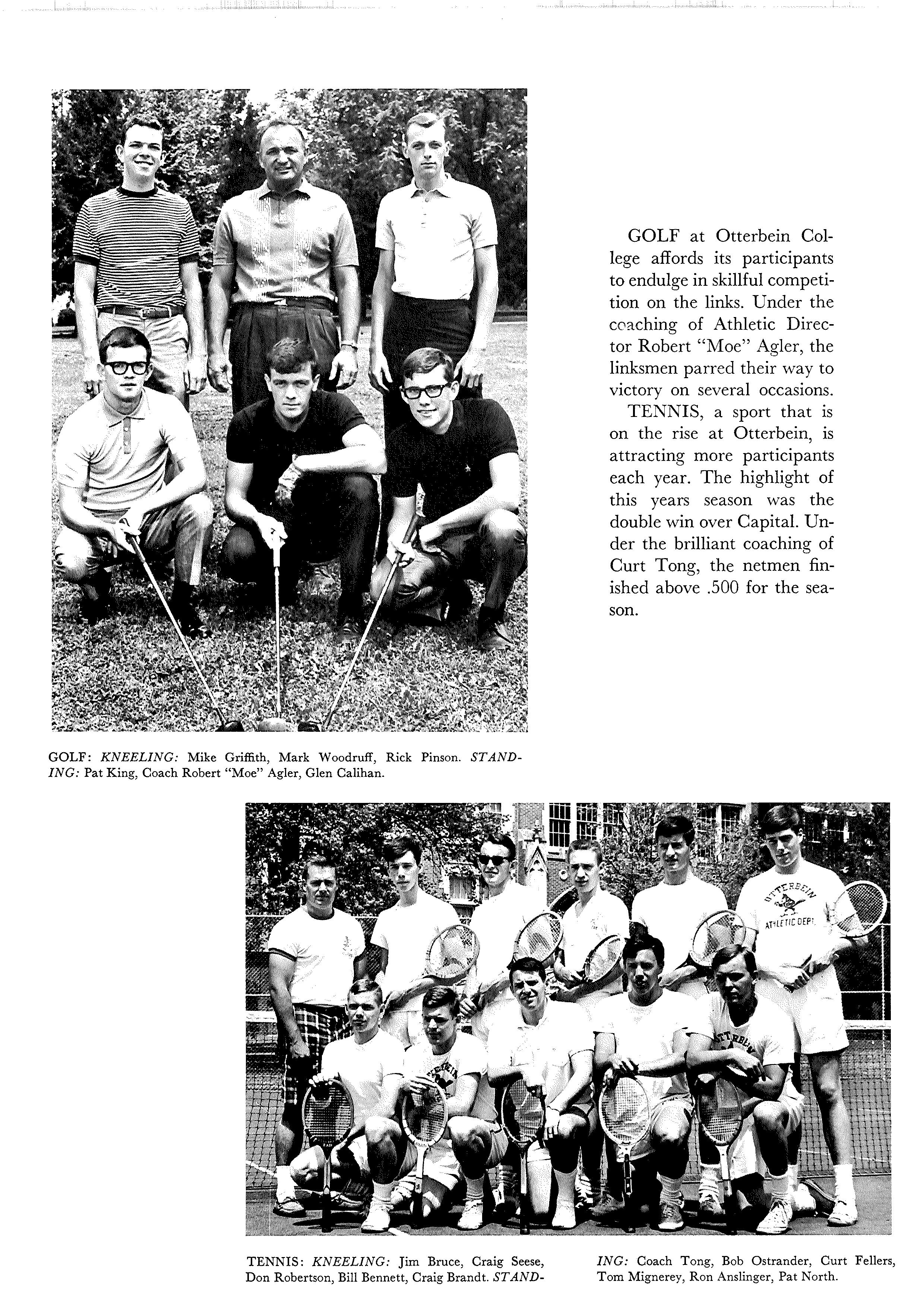 CONTENTS THIS IS OTTERBEIN COLLEGE . . . . . . . . . . 1 ADMINISTRATION AND FACULTY ....... 19 ORGANIZATIONS ........................ 40 GREEKS .................................. 96 STUDENT LIFE ........................... 126 ATHLETICS ............................. 164 GRADUATES ............................. 198 INDEX ................................... 222