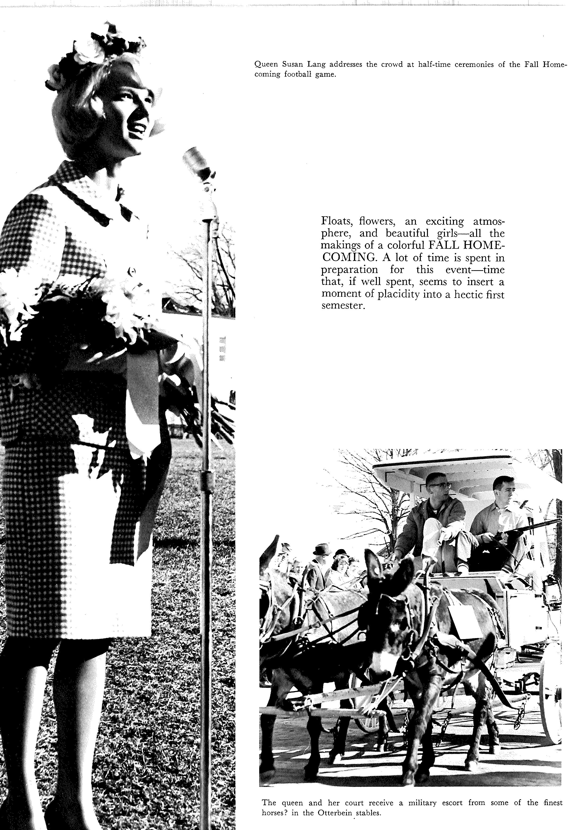 Another year began at Otterbein with faces both old and new ... an air of excitement and confusion reigned throughout as September wove a fall-time splendor upon dusty books and rooms and students' heads.