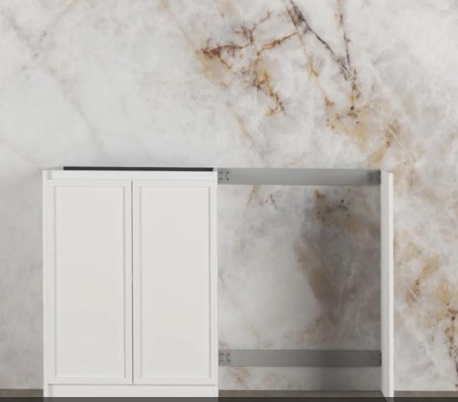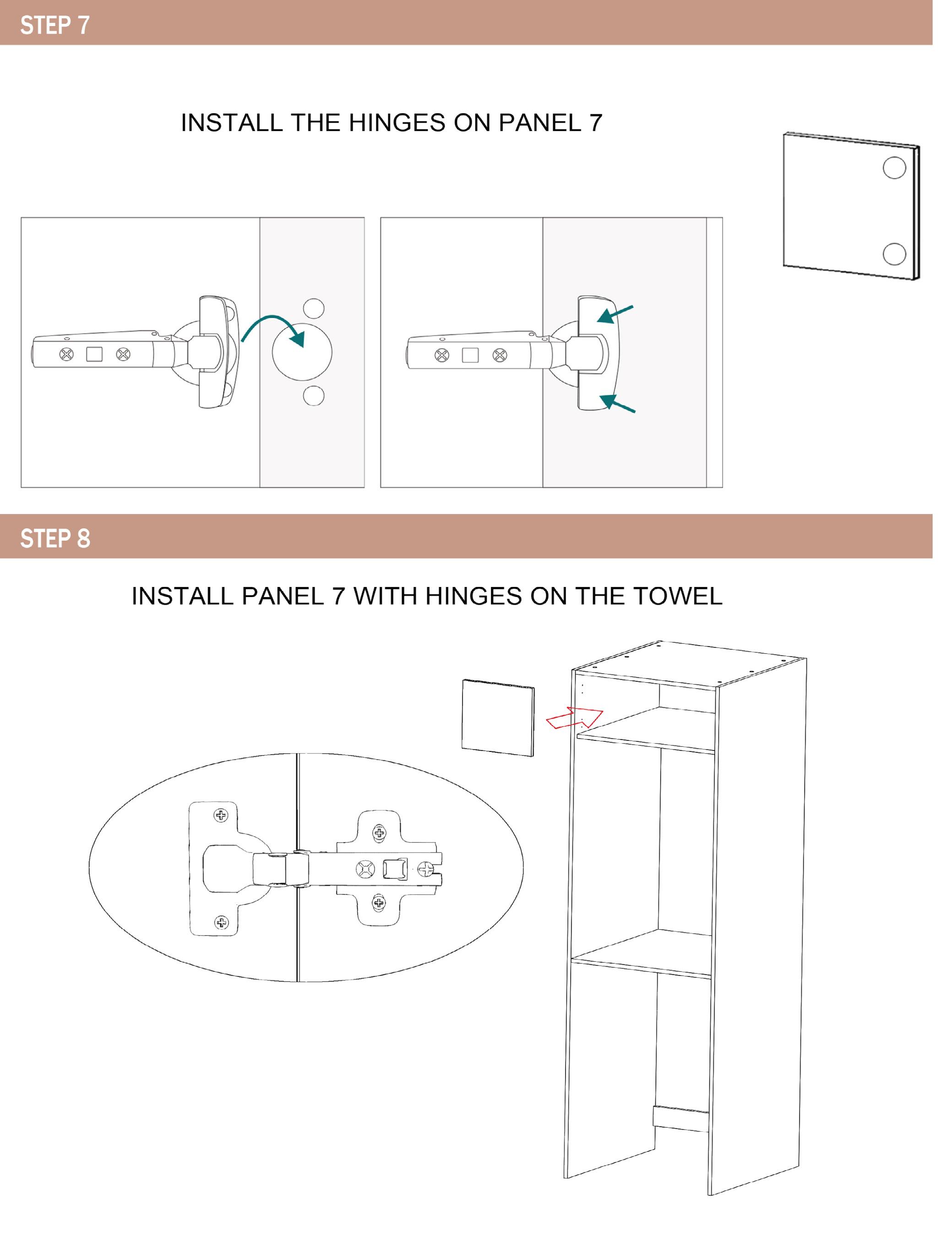 • To ensure a safe and damage-free installation, two people should install the larger items such as stone tops and Tall Cabinets.