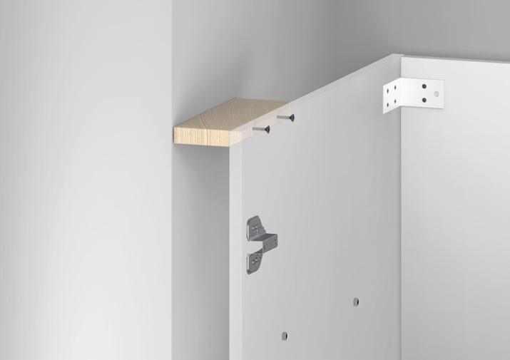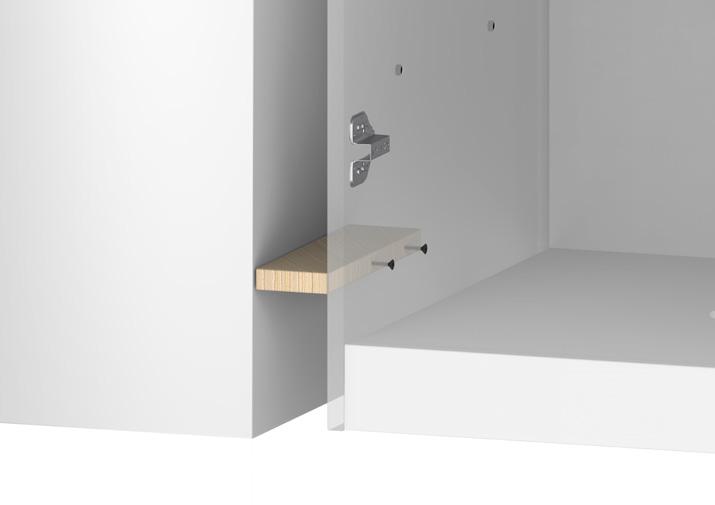 Place filler strip between the cabinet and wall, or between 2 cabinets Before fastening make sure the panel width allows for the door next to panel to open. Plan the piece to get the perfect fit. Then fasten to the joinery, secure by securing in using screws internally