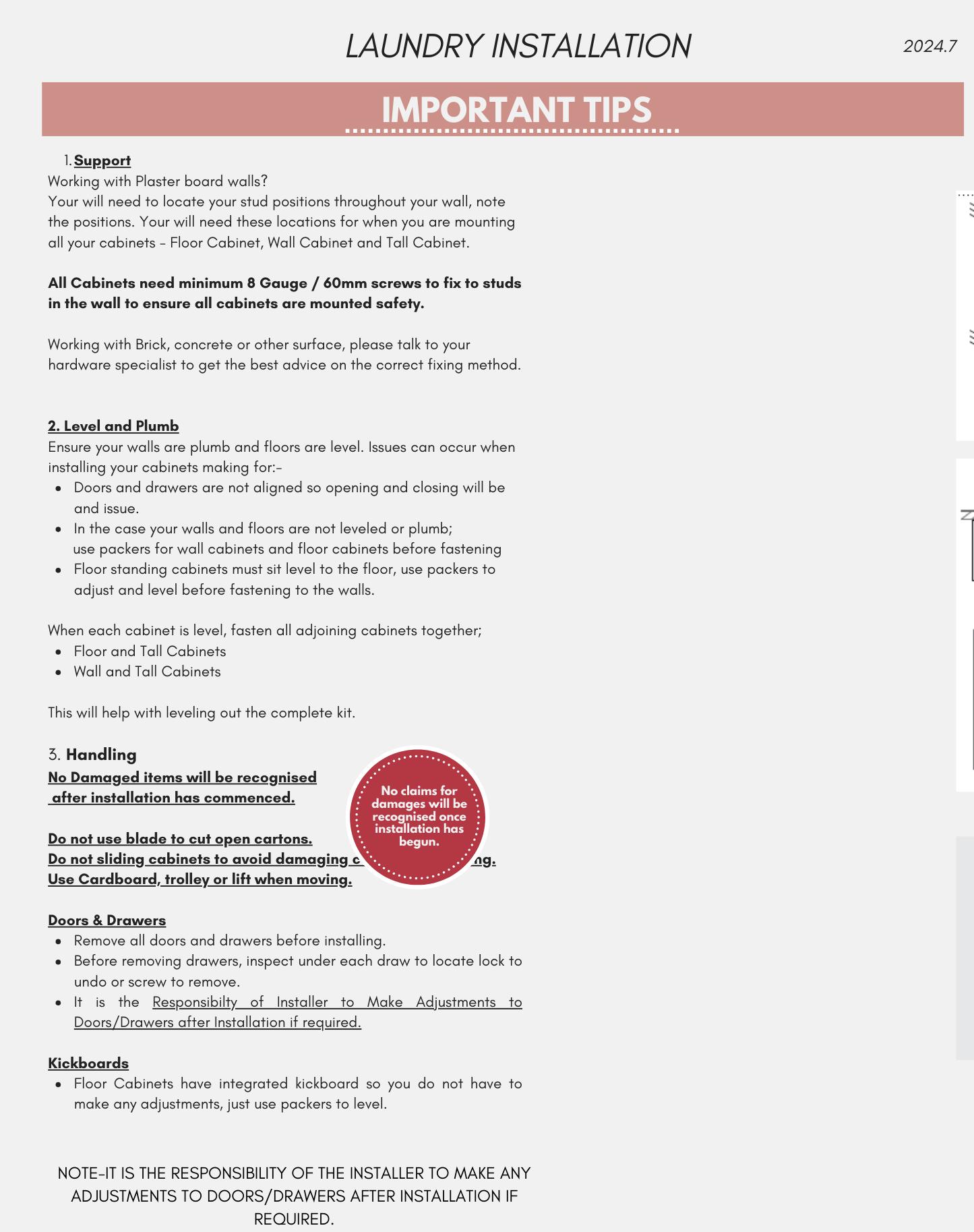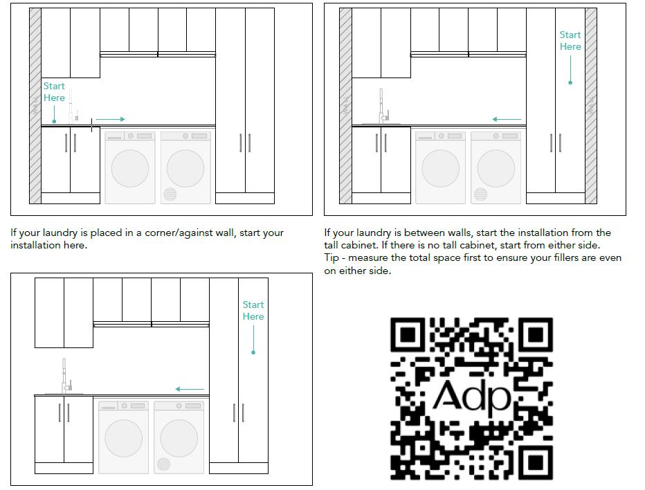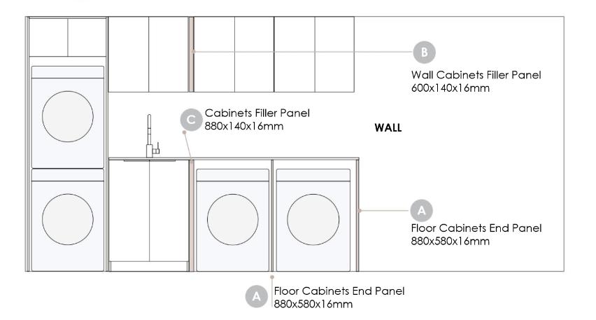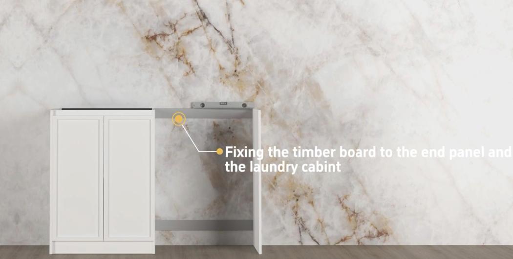Check for damage upon receiving your laundry and also before installing. 6. Install End 7. Install Filler Panels 8. Install Benchtop & Sink 9. Make