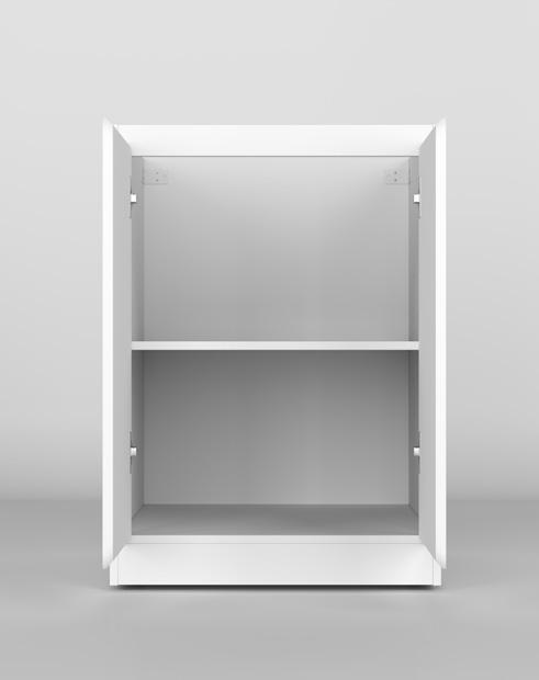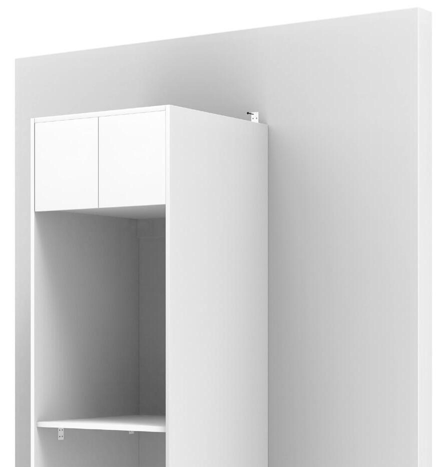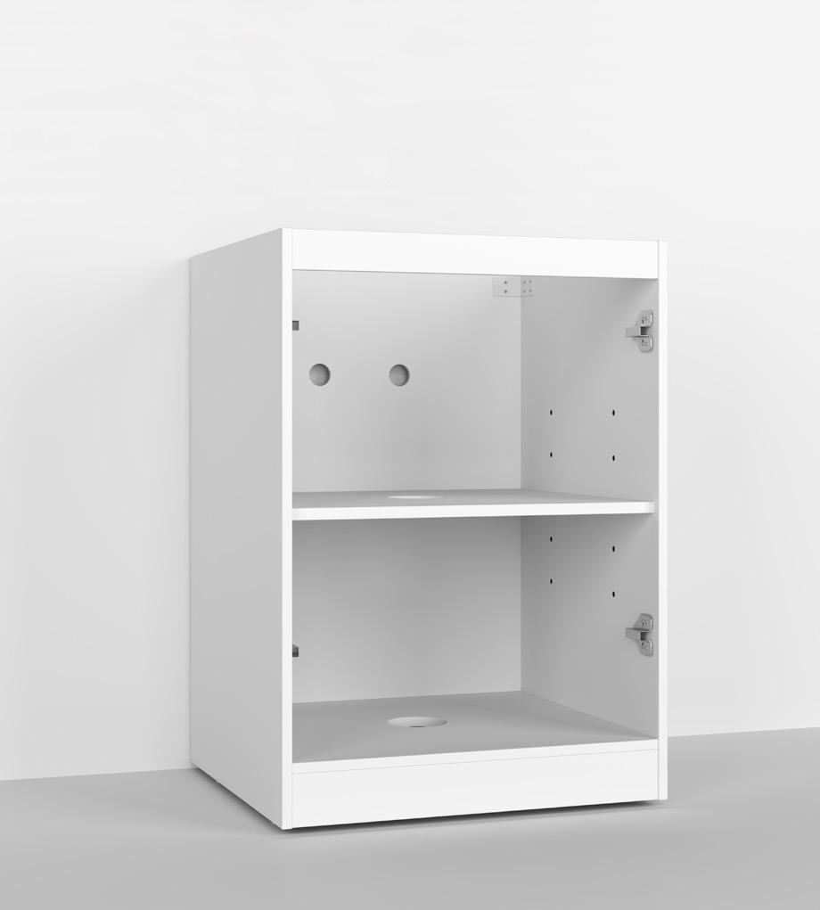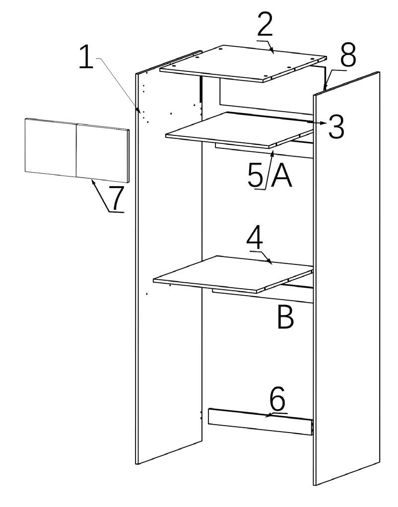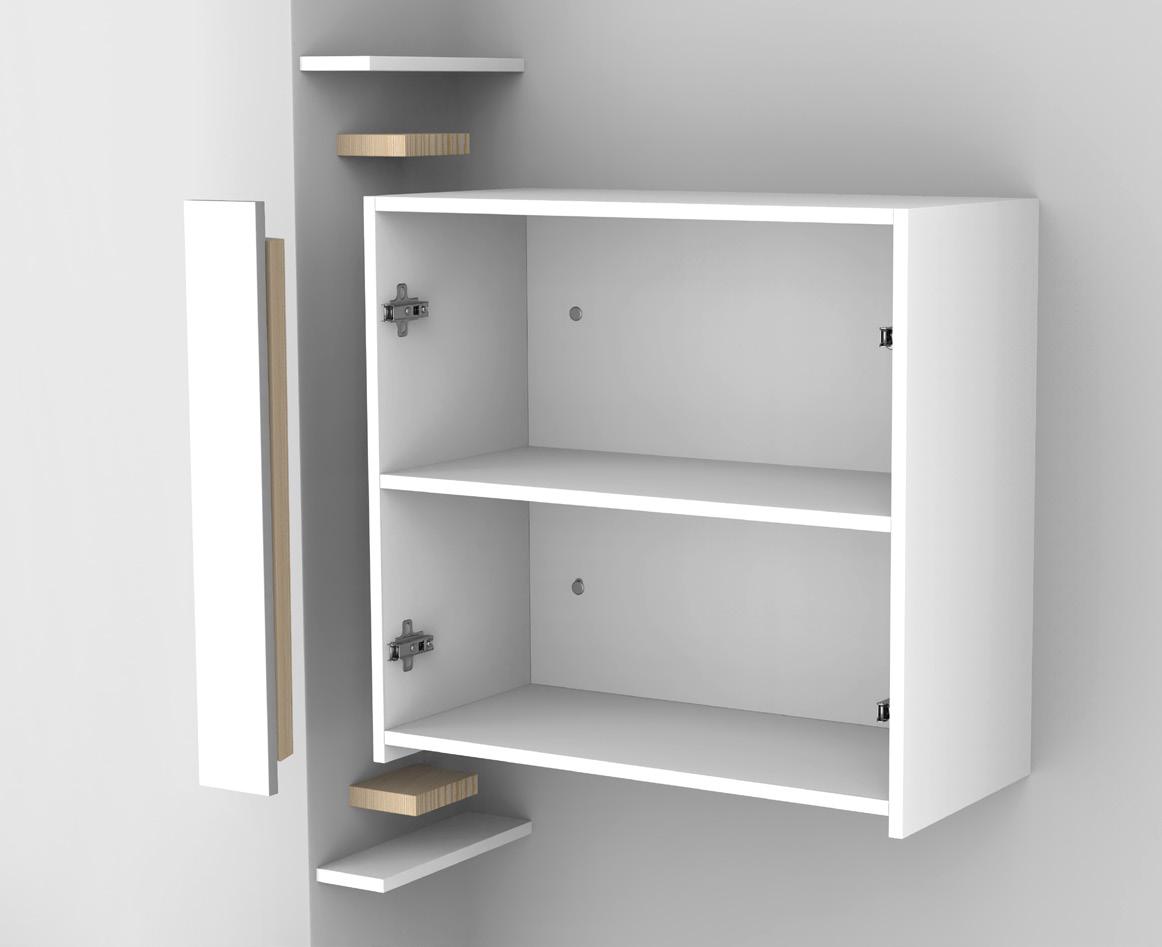 Your Tall Cabinet has integrated kick board. Remove Doors and shelves and store in safe place. Place your cabinet in the locations against the wall If the first cabinet is against a corner wall allow a 16mm gap for a filler panel, as to allow enough space for your door to open and not hit the wall