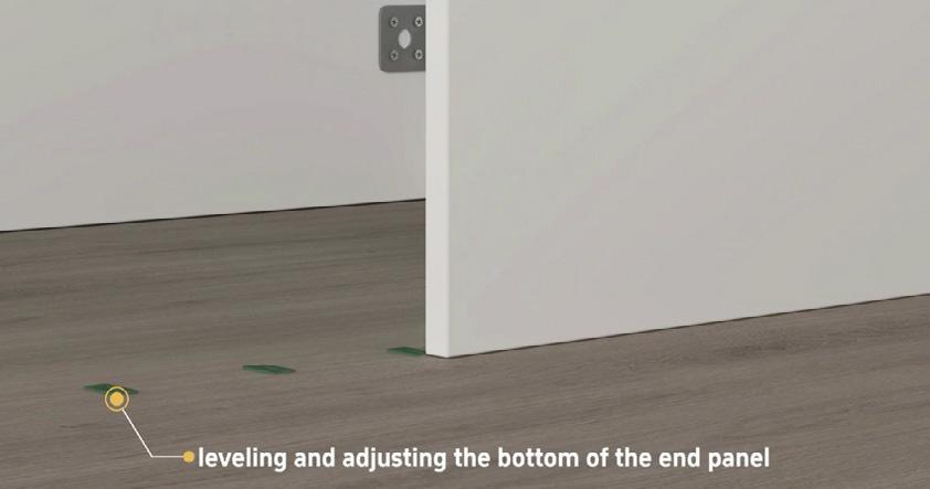 Use packers of different sizes if needed to ensure the end panel is level with the cabinet and rail use a spirit level to check