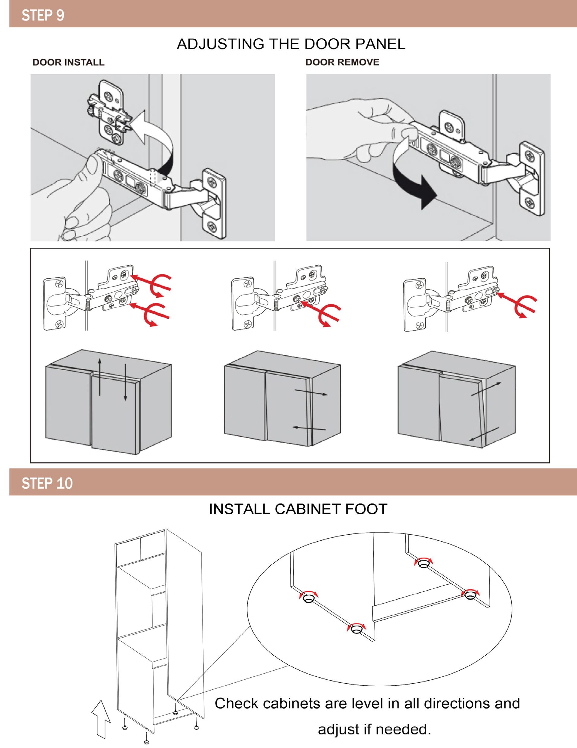 It is the responsibility of the installer to make adjustments to doors and drawers after installation if required