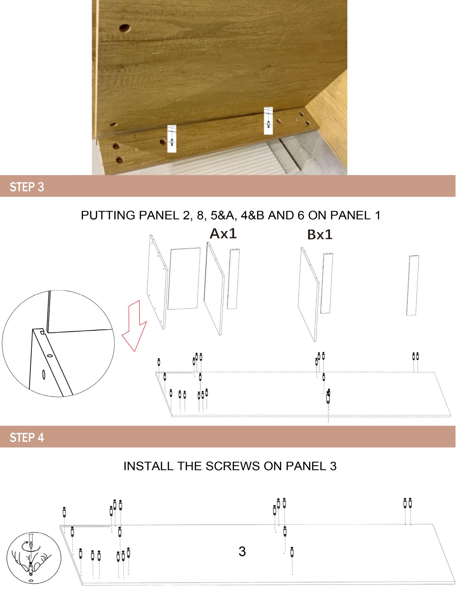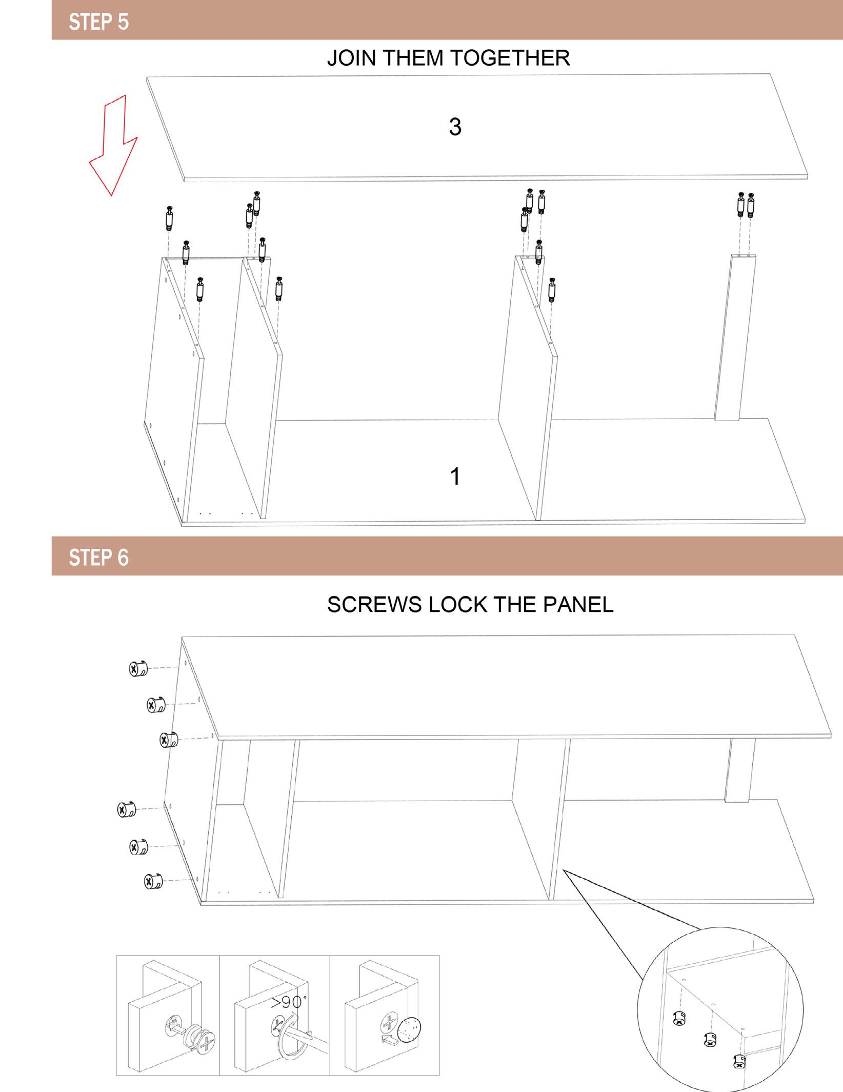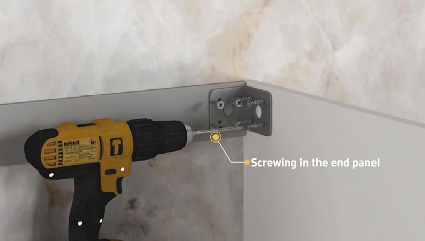 Install screw locks on t end panels to lock in to end panels