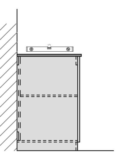 Use adjustable feet on the base of the cabinet to ensure your cabinet is level. Use a spirit level to check.