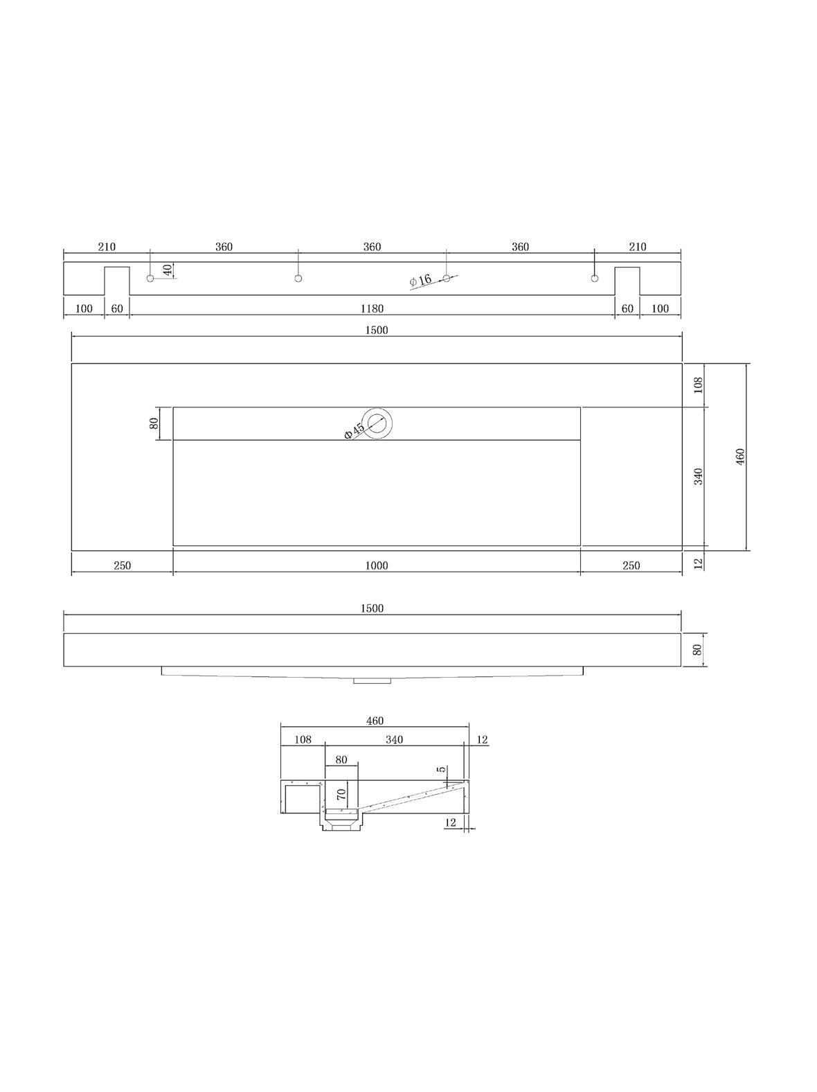 BASIN Overall depth 460mm Overall height 80mm