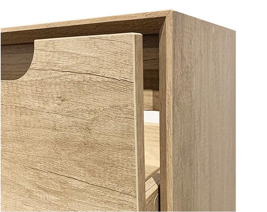 Inspired by Australian landscape and earthy textures, Laguna is finished using texture woodgrain oak look, featuring all-drawers, detailed with a mitred 45 degree edge.