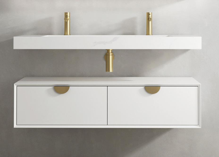 Inspired by the best in Spanish design, the combination Mood light cabinets, luxurious solid surface acquaplane basin, taylored cabinet finished with pressed metal handles adds a refinement and luxury to any bathroom.