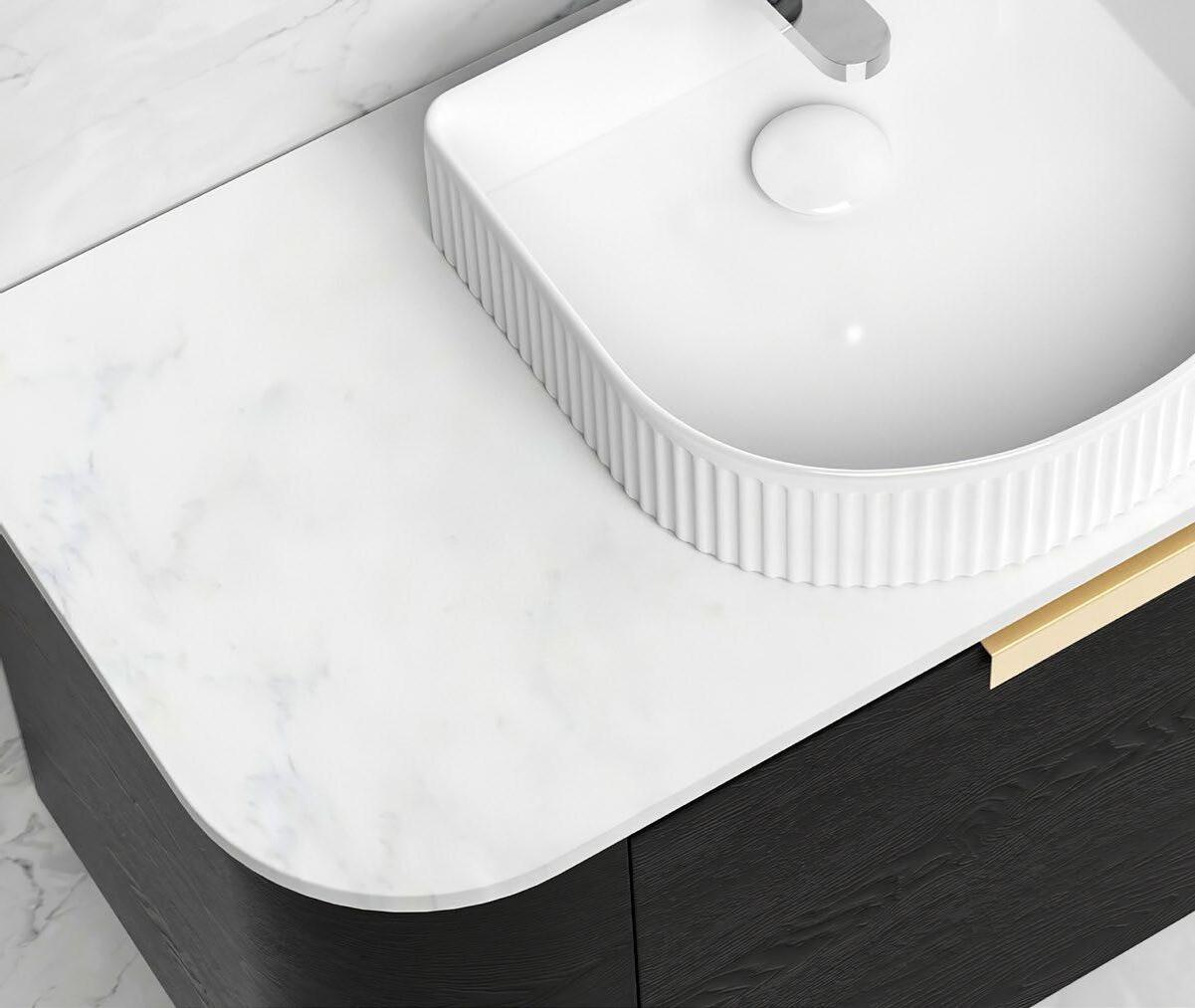 Place the stone top facing up and inspect for any issues. Do Not install if there is any