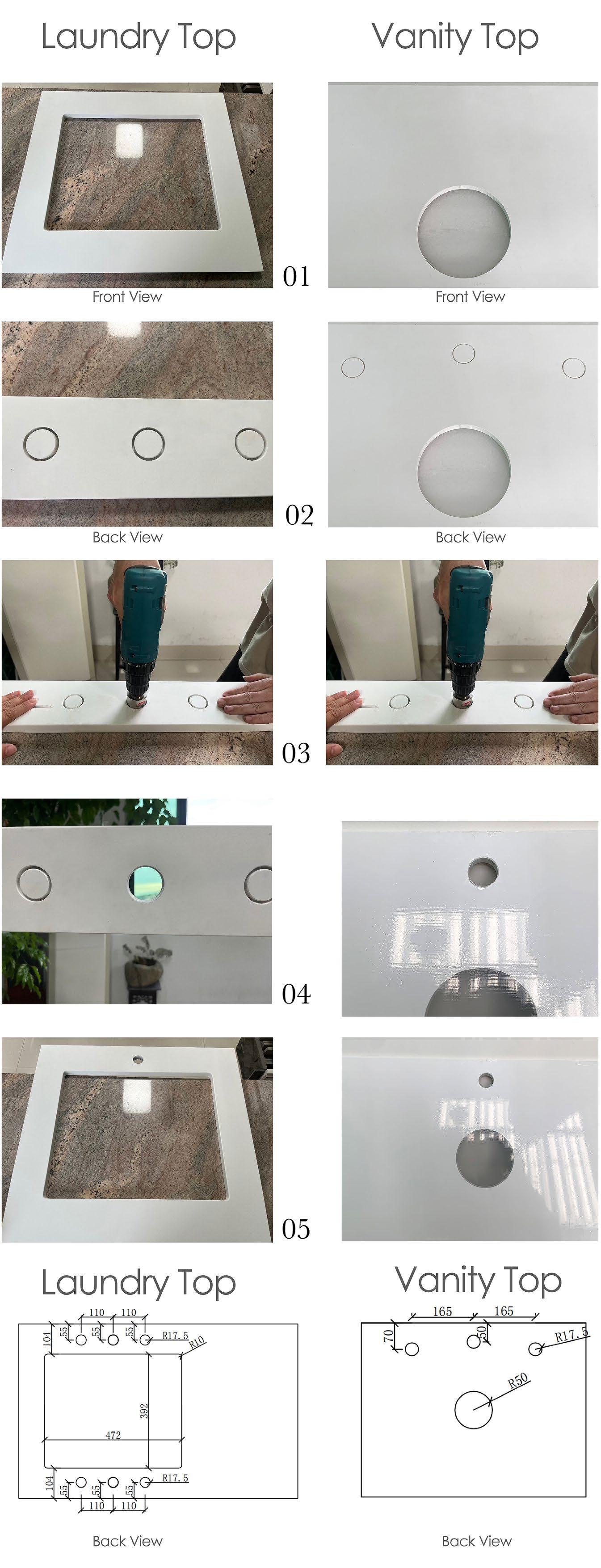 Turnover the stone top to see semi pre-drilled holes the Select one of these pre-drilled locations to drill out your