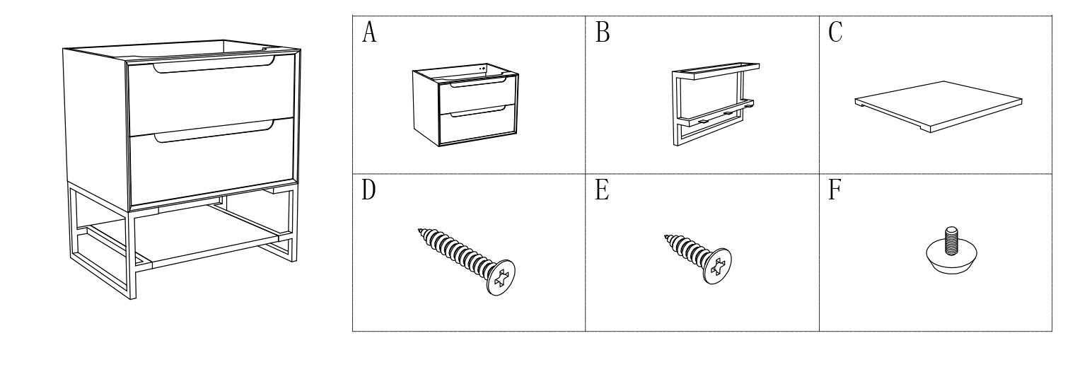 NOTE - If you have purchased a floor mounted vanity and elect to install it minus the floor mounted kick panel it will be necessary to obtain and install L shaped brackets. These brackets are to be installed in the top left and right corner of the vanity back to provide support to the side walls.