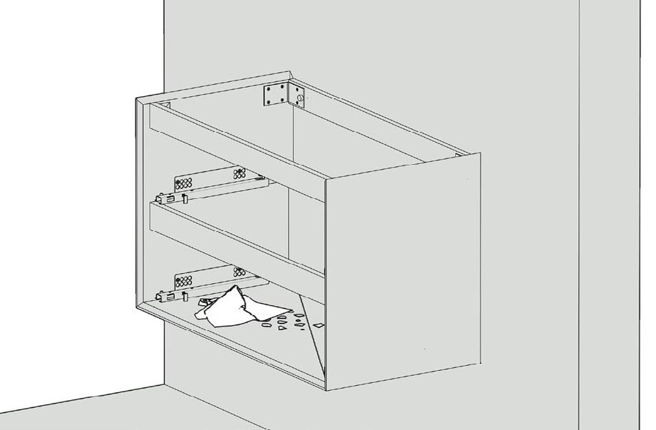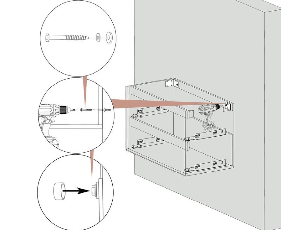 Before starting, check that your wall is plumb and flat. To ensure doors and drawers operate smoothly if wall is out of alignment use packers to level vanity so it sits level, avoiding the cabinet from twisting out of alignment and not function correctly.