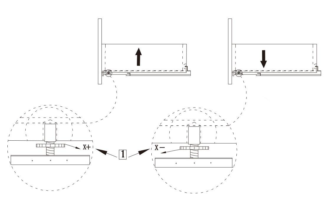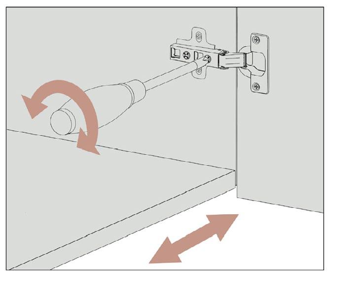After installation every cabinet you will need some adjustment as the doors and drawers move during transport and installation. The cabinet MUST be level before adjustments are made. It is the responsibility of the installer to ensure these adjustments are done correctly. No warranty claims will be considered until this adjustment process is completed. Refer to the instructions below.