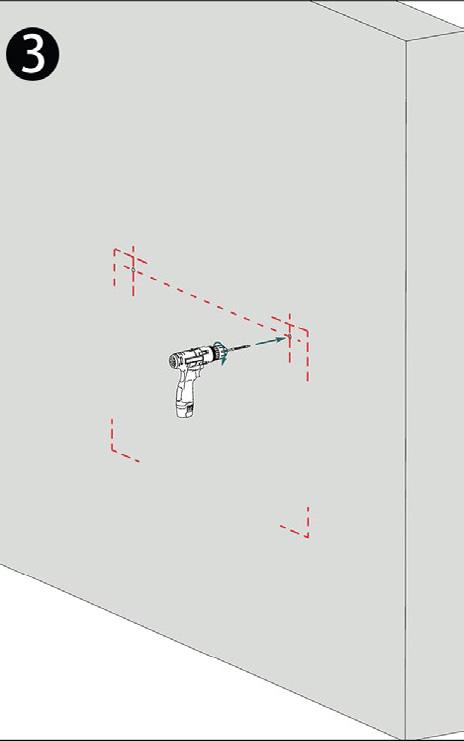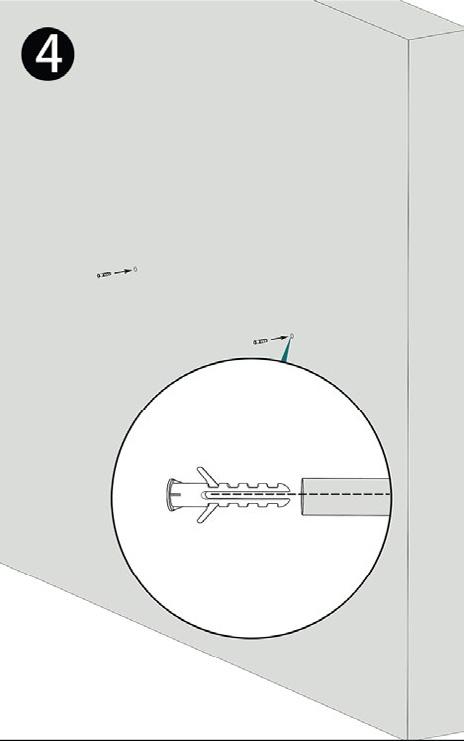 Drill holes for mounting screws provided, ensure these are drilled into supporting wall (through masonary, brick wall or noggins to support the cabinet load). Hammer in plugs into the drill holes.