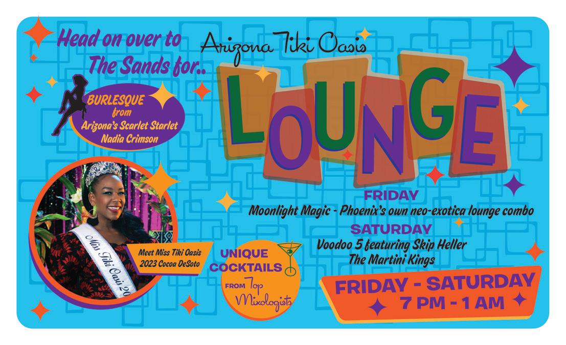 Join us for Cocktails & Conversation in the Arizona Tiki Oasis Lounge – Top Mixologists Adam Rains, The Golden Tiki Las Vegas & Kyle Rioux – two sets by local Exotica favorites