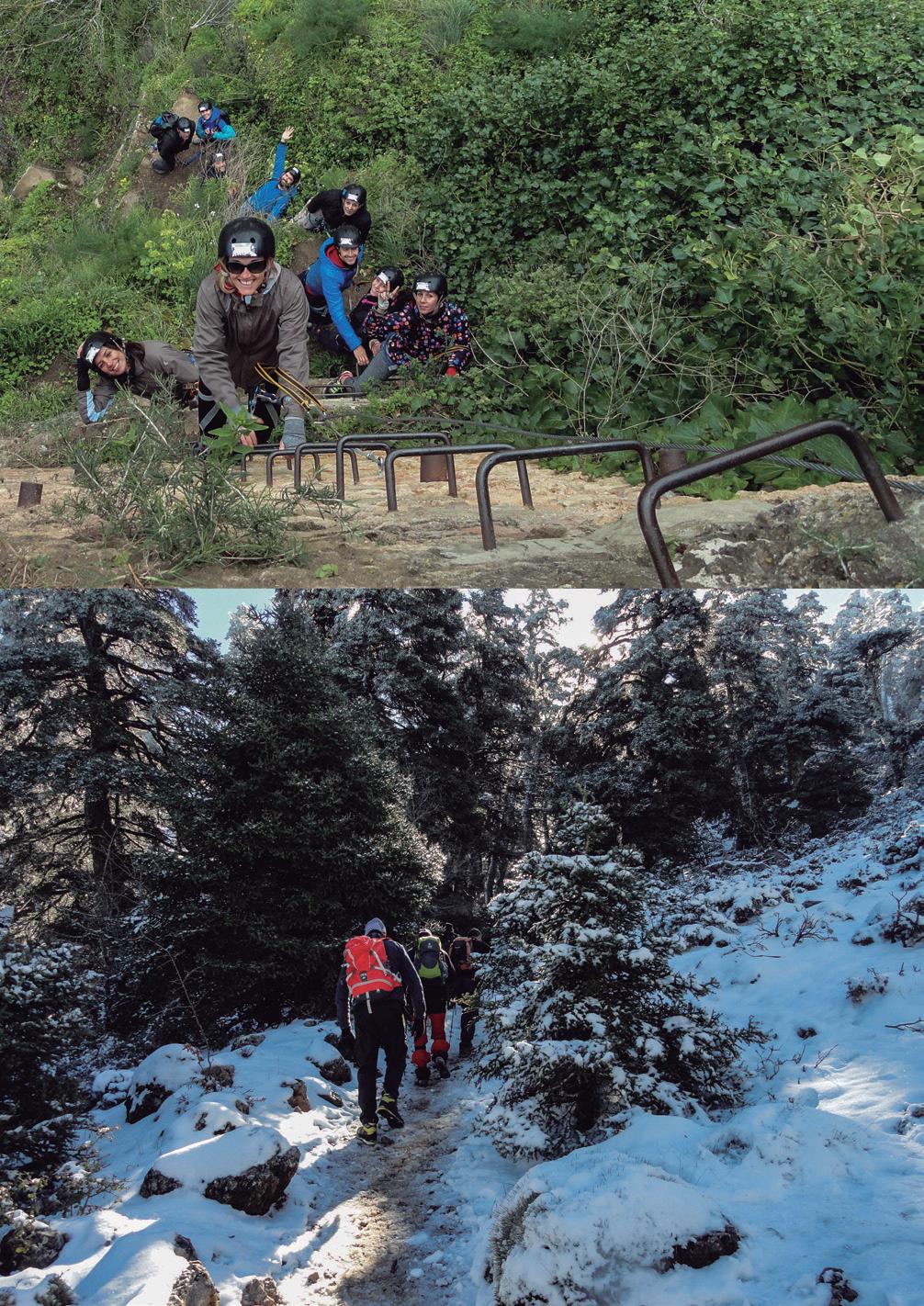 The first hiking adventure is a level 1 because of the slopes and distance. The second one, Double Via Ferrata, consists in a level-zero (for beginners) and a level-1 ascent (easy, with just some trickier parts.) The first adventure may require the use of crampons which our company will be providing. Specific equipment both for groups and individuals is essential in order to complete the Via Ferrata routes. It includes a harness, zipper or hard-hats. The guides will be also equipped with the necessary safety and rescue equipment.
