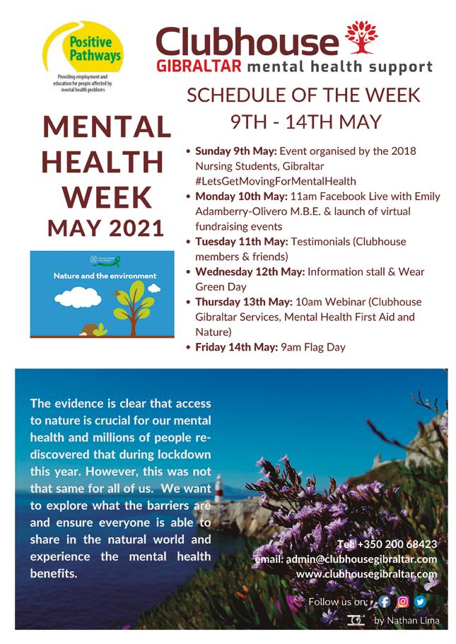 The schedule for Clubhouse Gibraltar Mental Health Week 2021 is as follows: