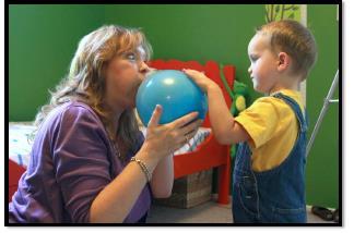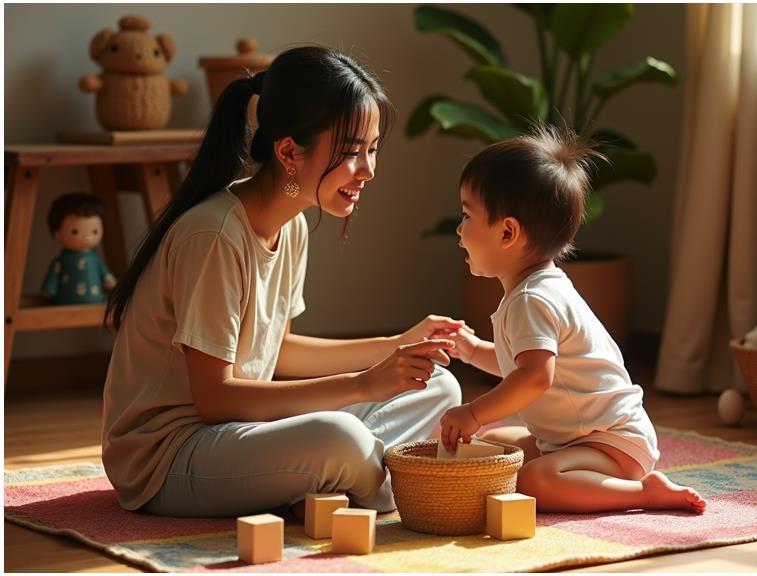 • Giúp trẻ bắt chước điệu bộ của bạn: vỗ tay, bai bai, hôn gió, chơi ú òa…
