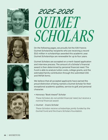 The Francis Ouimet Scholarship Fund awards significant need-based scholarships to deserving students who have worked at Massachusetts golf courses.