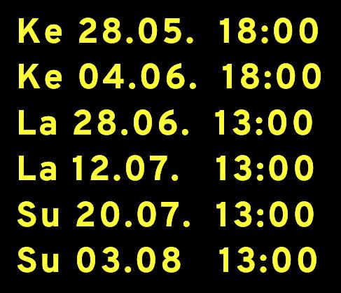 Aukioloajat kesä- ja elokuussa ke 16-20, to 10-14, pe 12-18, la 10-14 Huom, poikkeusaukiolo heinäkuussa