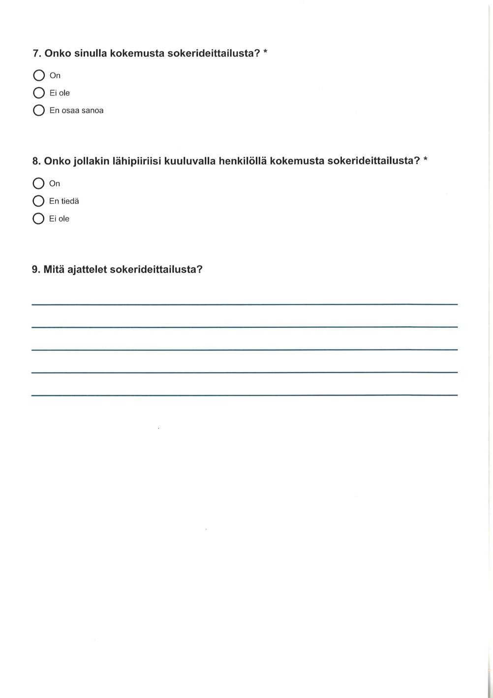 Avoimen kysymyksen ”Mitä ajattelet sokerideittailusta?”