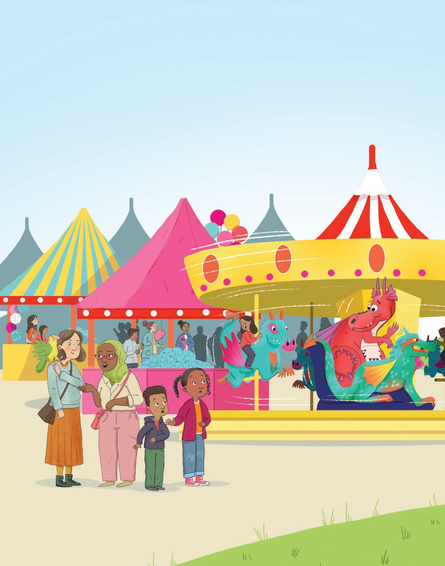 When they entered the fair, Omar turned to Nadia. ‘Look over there,’ he said. ‘It’s Ember!’ Ember was spinning around on one of the rides.