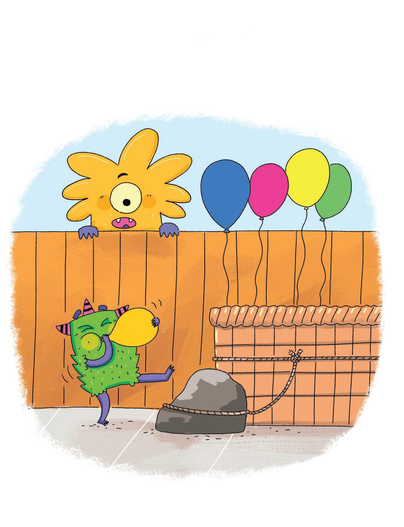 you help blow up the balloons, you can come with me!’ exclaimed Scooter. ‘I’ve done f ive balloons so far. But we’re going to need lots more!’