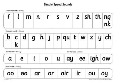 Speed sounds posters for quick review of the letter– sound correspondences.