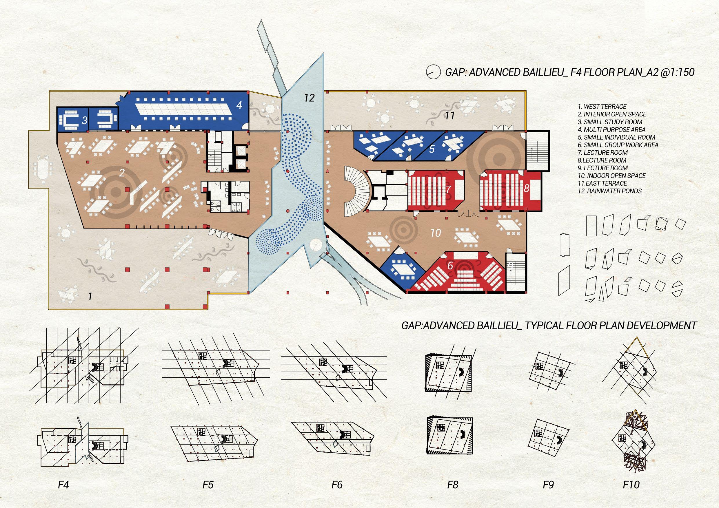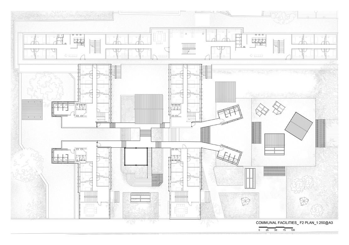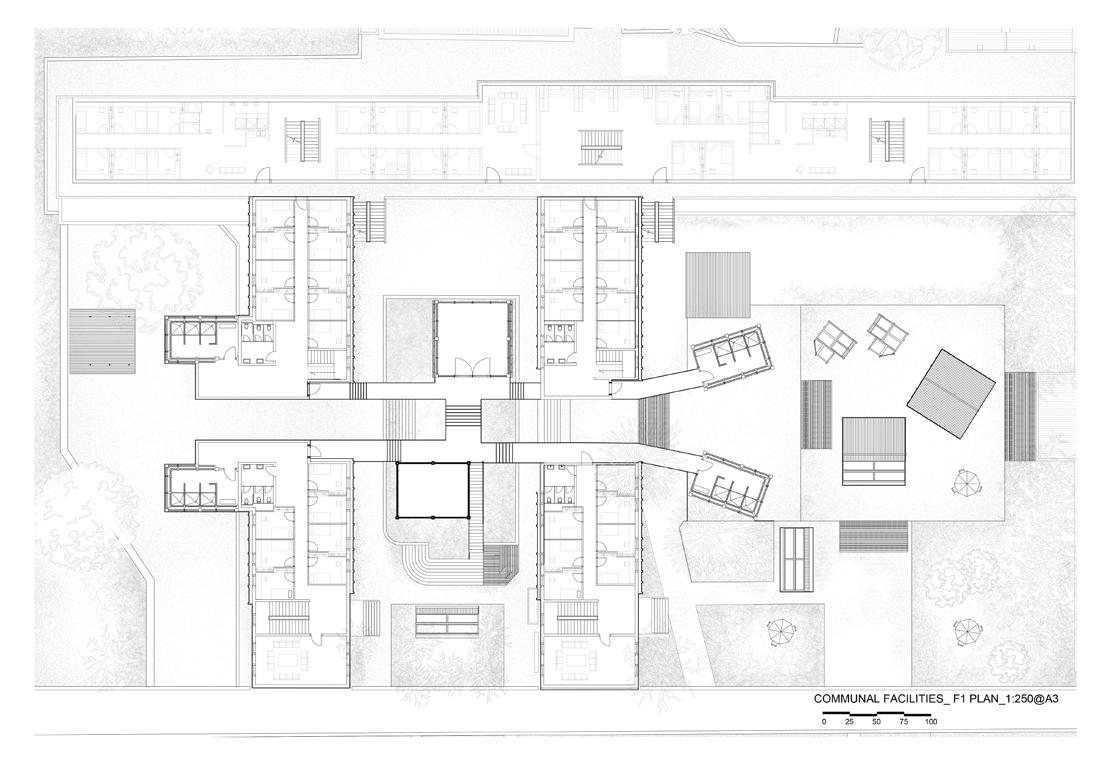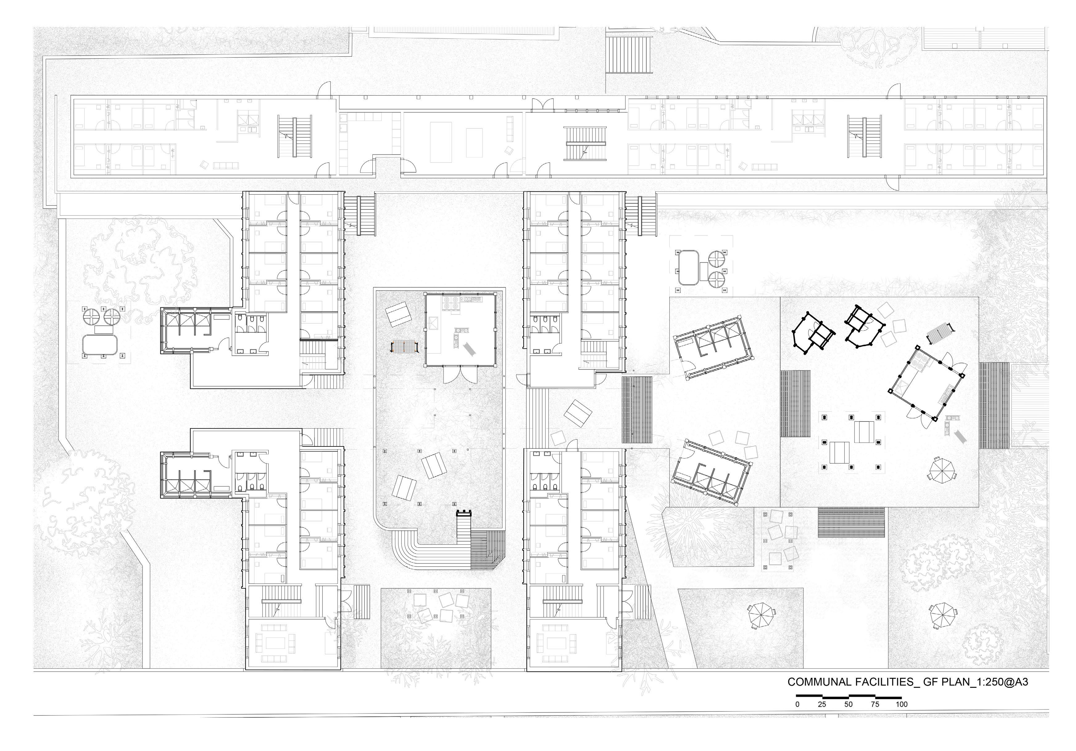 The strategies break down in 3 hierarchy parts: Firstly, the existed bathroom is demolished to create a large circulation space. which reconfigured to include separate facilities. Secondly, pavilions will be introduced as new communal facilities for students. Finally, corridors and ground circulation will active the site, allowing each unit to be independent yet interconnected, fostering interaction and communication among students.