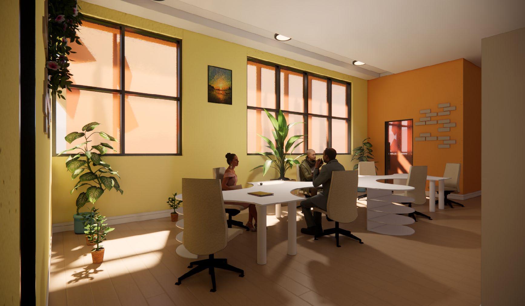 This is a small group communication place for collaborative work, the atmosphere is relatively relaxed and more suitable for small projects where 2-3 people collaborate.