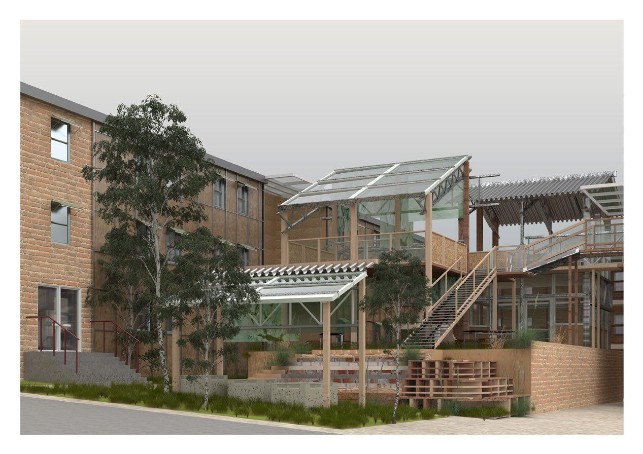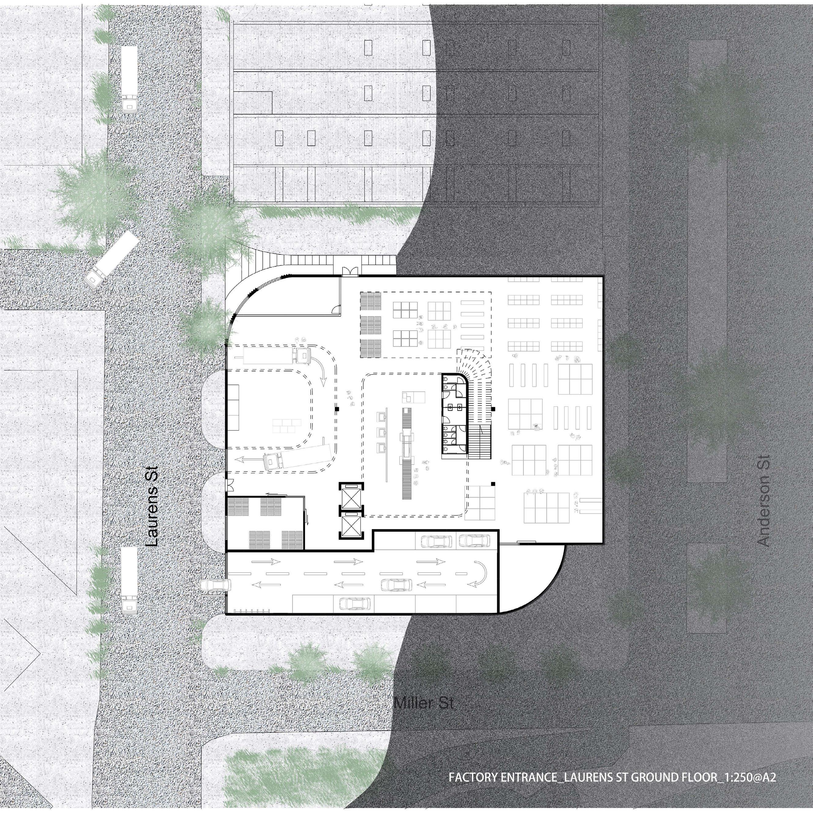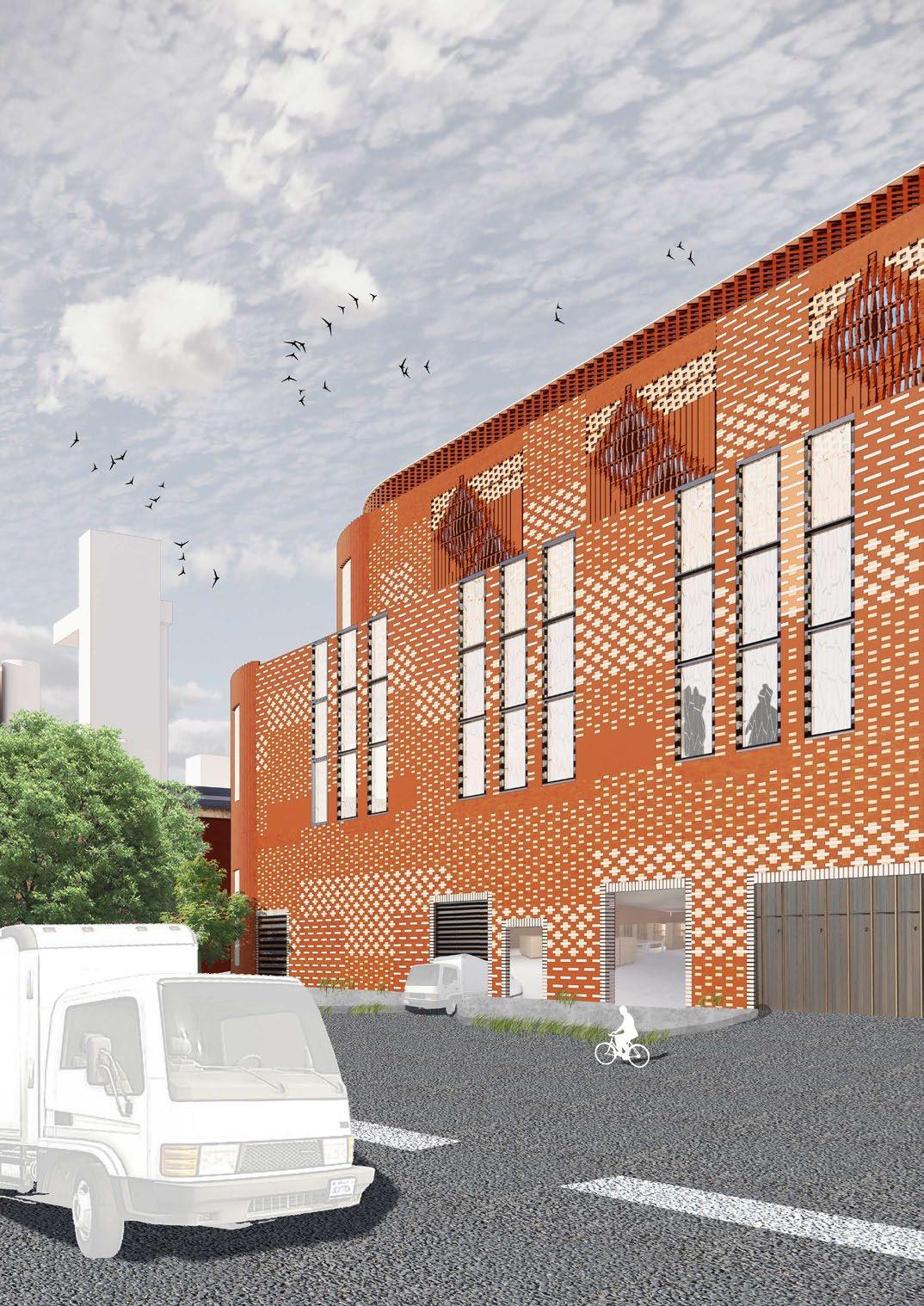 Based on this, the architecture is designed for amusement based on daylight, green areas, brick wall art, and the urban functional zone divisions within the site. It aims to create shaded light and shadow effects through greeneries, promoting pedestrian interaction. The site is chosen for its natural accessibility, reducing the sense of boundaries and the perceived distance between people and the factory. By nature of the factory and its interaction with the community, it aims to create a sense of closeness and harmony while maintaining the privacy of the industry. It serves to fill the gap and acts as a connection between the industrial and urban zones.