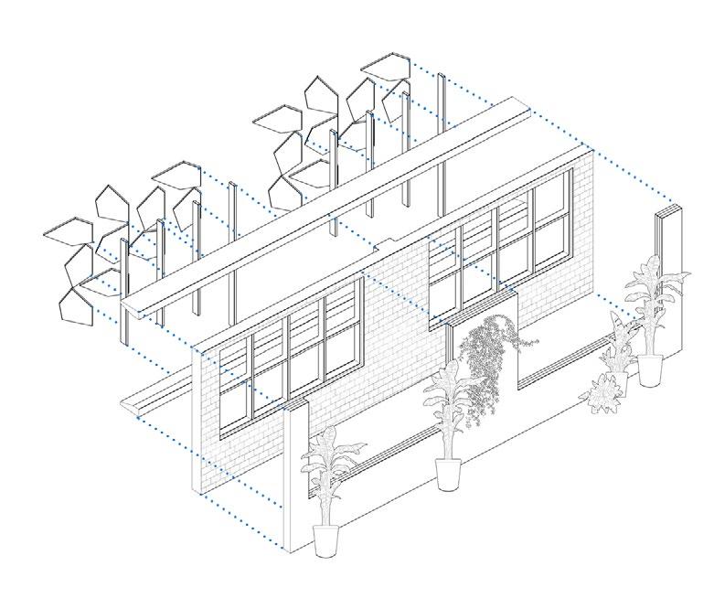 Additionally, each window has been added shadings, and straw found from agriculture land transformed into thatch and cladded with polycarbonate as an external layer to dormitories as insulation, reduce thermal energy loss.