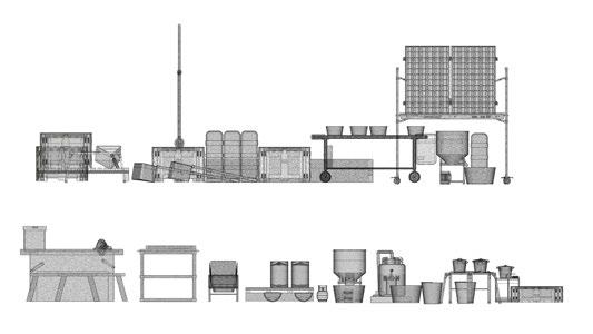 In terms of materials, the project focuses on recycling site waste to emphasize the amount of waste generated by campus and achieve on-site recycling. It aims to redevelop non-commercial materials, including abandoned buildings, plastics, and naturally occurring unwanted waste such as straw algae, into new construction materials.