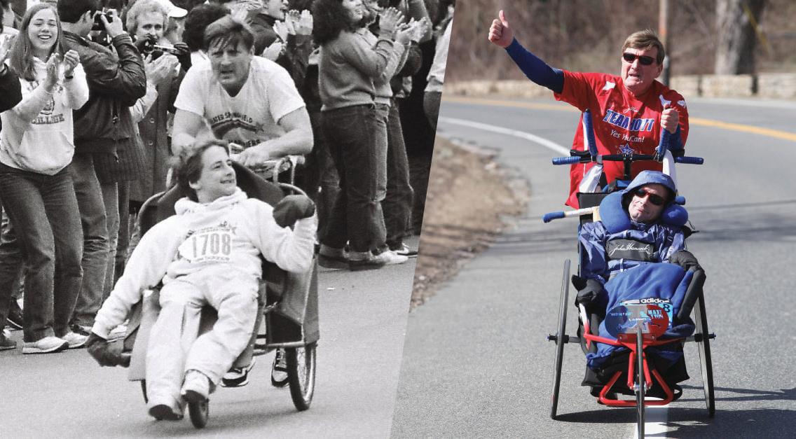 is running with him it feels like his disabilities are gone. That fueled Dick to run the Boston Marathon 30 times and many other races, happily pushing Rick the entire way.