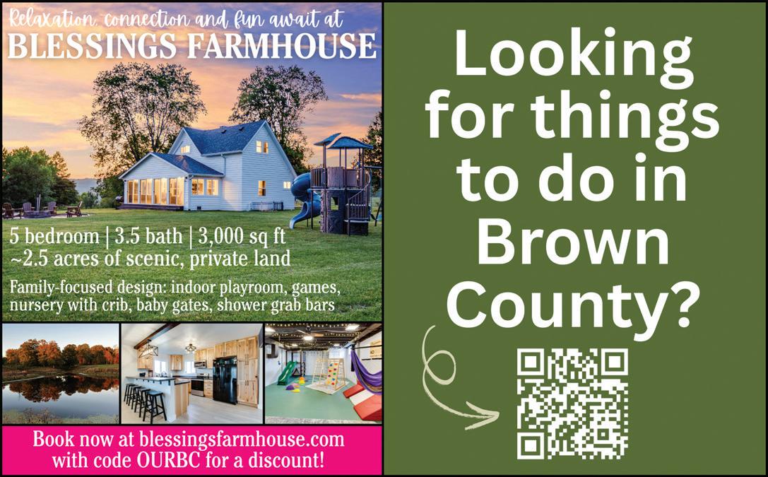 You can have Our Brown County mailed to your postal address. A year’s subscription (six issues) is just $20, which covers postage, supplies, and processing time. You can subscribe by sending in the form below or visit our website ourbrowncounty.com –select the SUBSCRIBE option and follow the payment instructions.