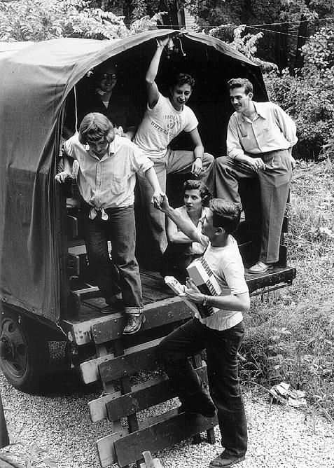 Indiana University Theatre director, Lee Norville, agreed to oversee productions from the Bloomington campus, where the company was comprised of drama students and provided the workshop where scenery was built. In the early days, company players jumped into the open back of a truck and traveled the 16 miles on Route 46 to Nashville where their enthusiastic audiences awaited. In time, red and white vans provided transportation for the company.