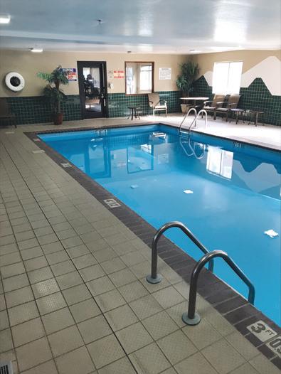 The lighting and the large windows, peering out into the woods, give the aquatics center a warm, homey feel. The whirlpool has a waterfall to relax under while young ones swim. This clean facility is fun for all ages and has something everyone can enjoy.