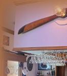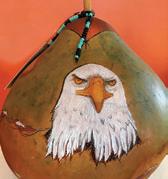 “I get real focused, or obsessed” with a topic, he said, and devours books on it, talks to people who are experts in the field, and immerses himself in the craft. Most of the space in his workshop is taken up with stone and the tools he uses to carve it. But it also holds evidence of his varied interests, including a detailed scrimshaw powder horn, carved pipestone, stained glass, a kachina doll in the style of southwestern Native Americans, and a miniature replica of Lewis and Clark’s wooden longboat.