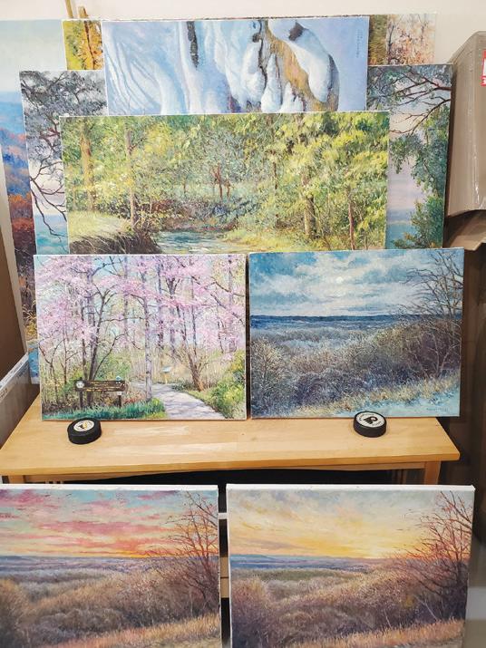“I had revisited Monet’s “series” paintings. Monet became fascinated with the idea of multiple paintings of a single subject under different effects of light (time of day, season, etc.),” Tim said. “Inspired by Monet’s experiments, I came up with the idea to paint the vistas of Brown County State park in different seasons and in different light.”