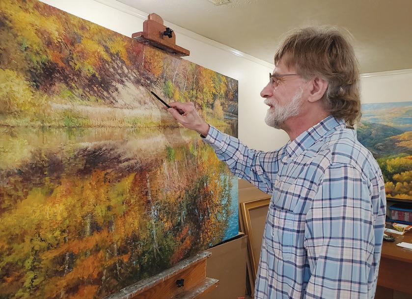 Tim Greatbatch putting finishing touches on “Reflections, Strahl Lake Cove.”