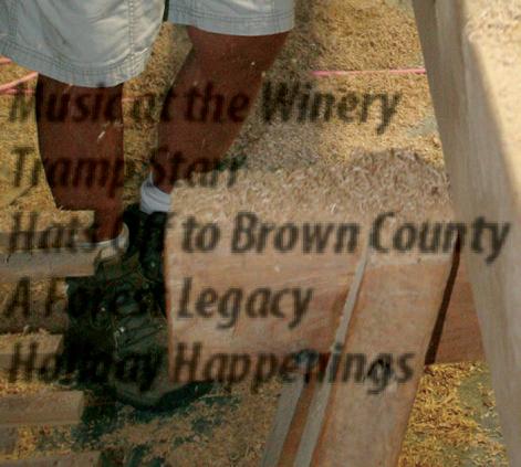 The newest masterpiece from a group of Brown County artisans whose tools include chisels, chainsaws, and Paul Bunyan-sized hammers, will soon be on display outside the Brown County Music Center: a 700-square-foot timber frame pavilion.