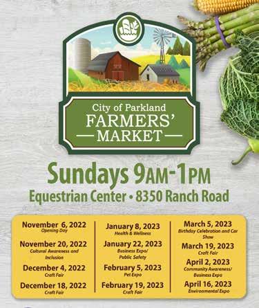 “The mission of the Parkland Farmers’ Market is to contribute to making our City a healthy community. To do this, we provide a community gathering that offers a wide assortment of conventional and organic fruits as well as an abundance of gourmet food items. The market offers spices, coffees, teas, sauces, and dog treats. Much of which is made and can be enjoyed on site. We also feature specialty market days such as craft fairs, health and wellness fairs, and pet day,” said Todd DeAngelis, Chief Communications Officer for the City of Parkland.
