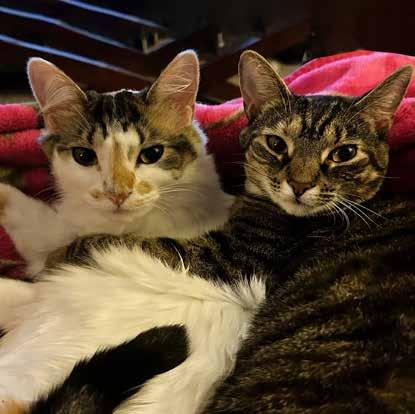 These are one-year old sisters. Calliope (left) and Chaos (right). Callie is Queen of the house that loves bread and cuddling. Chaos loves to play fetch and watch wildlife through the windows.“Calliope & Chaos”